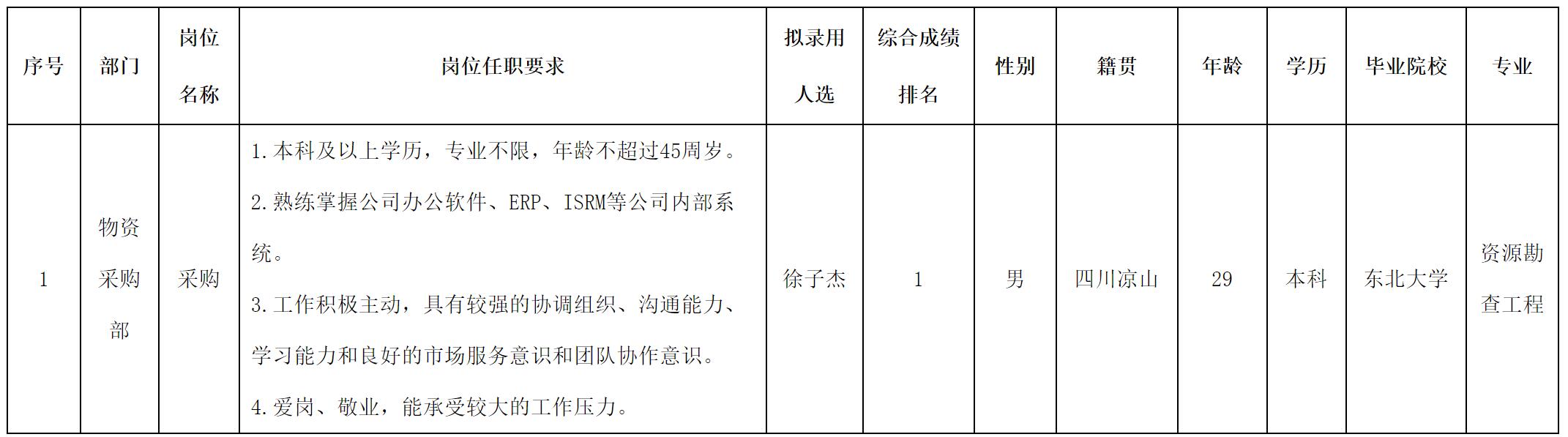 根據(jù)四川長(zhǎng)虹新網(wǎng)科技有限責(zé)任公司發(fā)布的招聘公告及招聘相關(guān)規(guī)定,經(jīng)面試、考察、體檢等程序,擬錄用徐子杰同志到公司工作,現(xiàn)予以公示,具體情況如下: