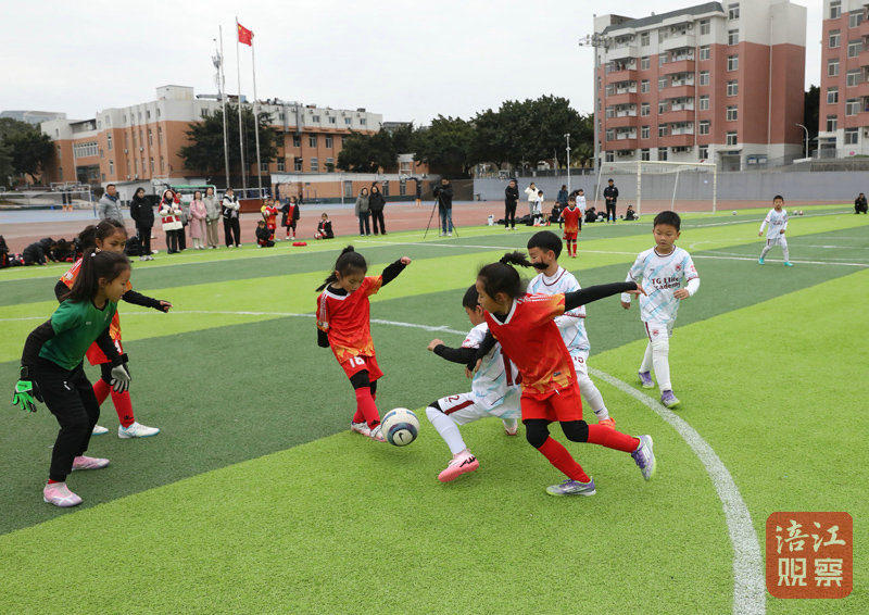 比賽一開始,江油女足的小隊員們便開始展現(xiàn)出較為嫻熟的足球技巧,他們在五人制足球場上與同年齡段的男孩們奮力爭搶。別看孩子們小小的個子,面對雙語學校的男隊員,這些女孩一點也不膽怯,總是想方設法突破對方防守。對方有好幾次射門,大都被江油女足隊員防守成功,守門員也勇敢地奪下了幾次射門。雙方在球場上你拼我搶,幾乎可以說勢均力敵??偟膩砜?,這些小球員們的傳球、停球、射門技巧已經(jīng)有了較好的表現(xiàn)。