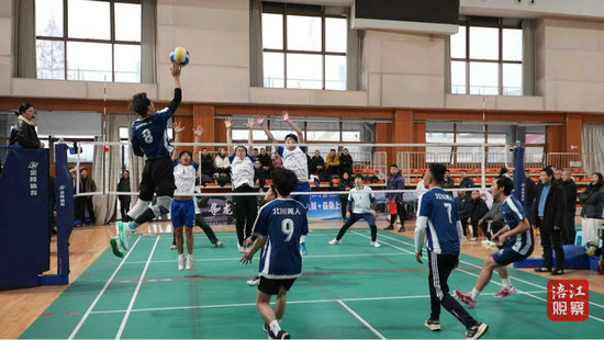 比賽現(xiàn)場(chǎng)氣氛熱烈,各隊(duì)展開激烈角逐。運(yùn)動(dòng)員們?nèi)耐度?,扣殺、攔網(wǎng)、撲救等精彩場(chǎng)面不斷出現(xiàn)。大家始終保持積極拼搏的姿態(tài),得分時(shí)共同歡呼,失誤時(shí)彼此鼓勵(lì),展現(xiàn)出良好的團(tuán)隊(duì)協(xié)作與體育精神。