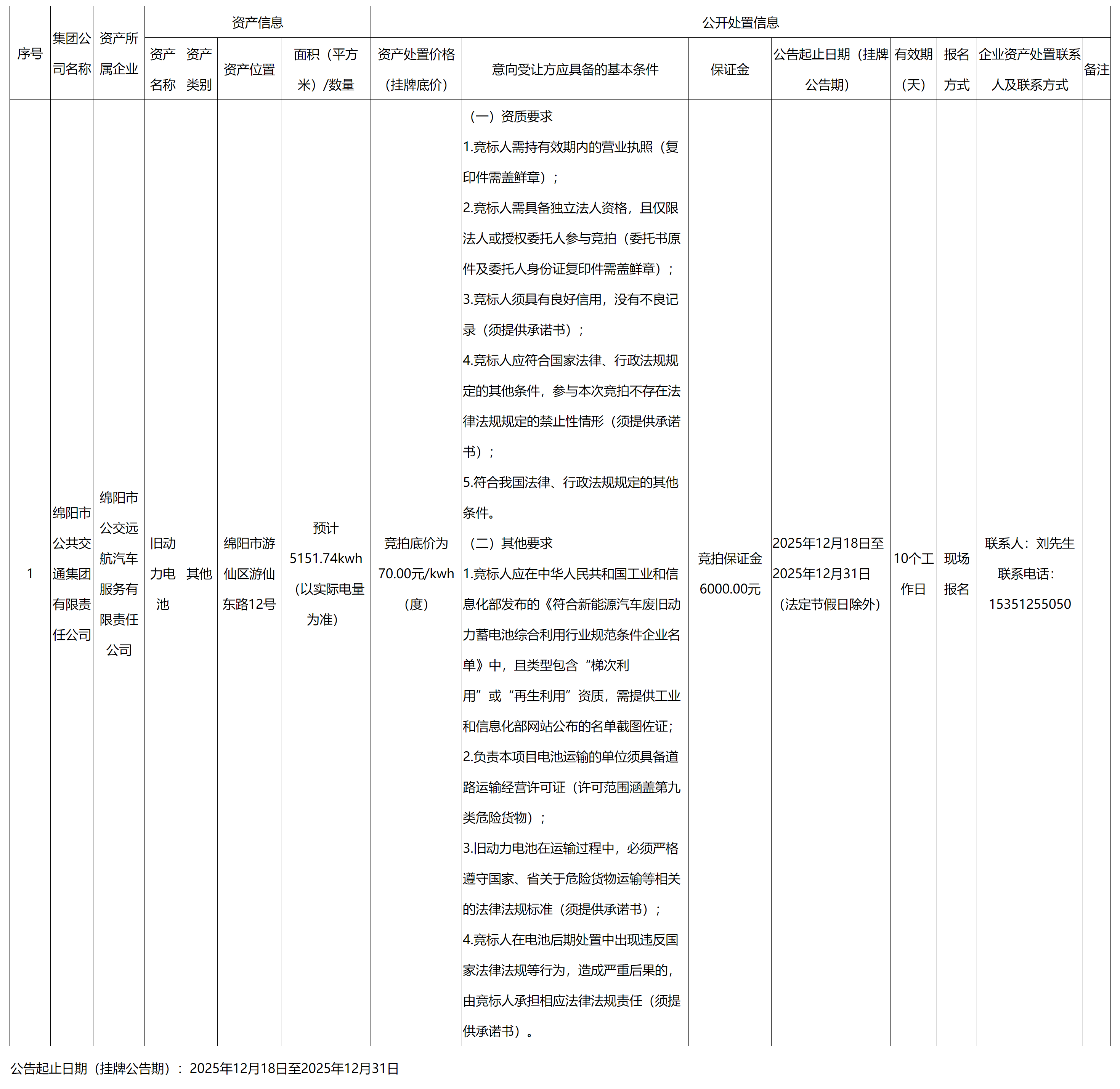 綿陽市公共交通集團(tuán)有限公司資產(chǎn)處置公告