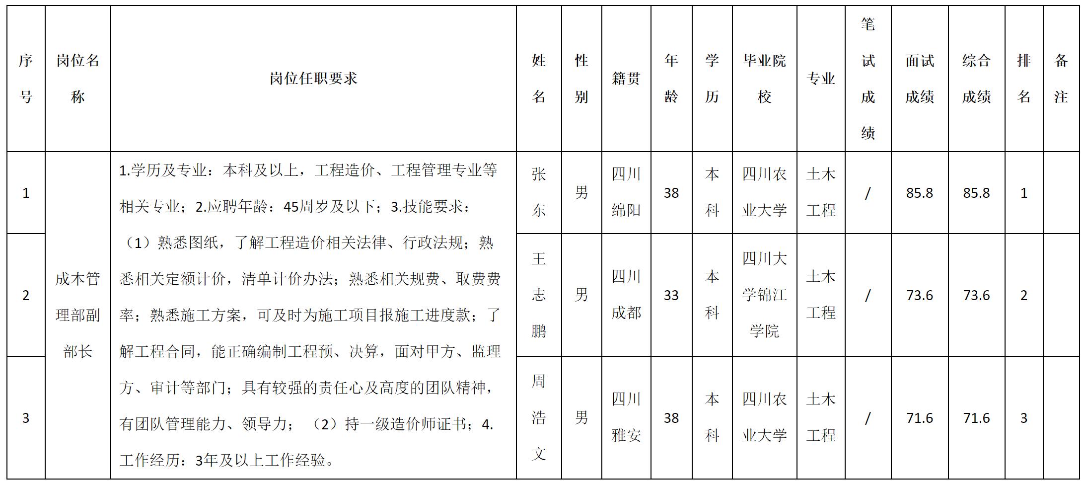 根據四川九洲建筑工程有限責任公司發(fā)布的招聘公告及招聘相關規(guī)定,現將測試成績予以公示。