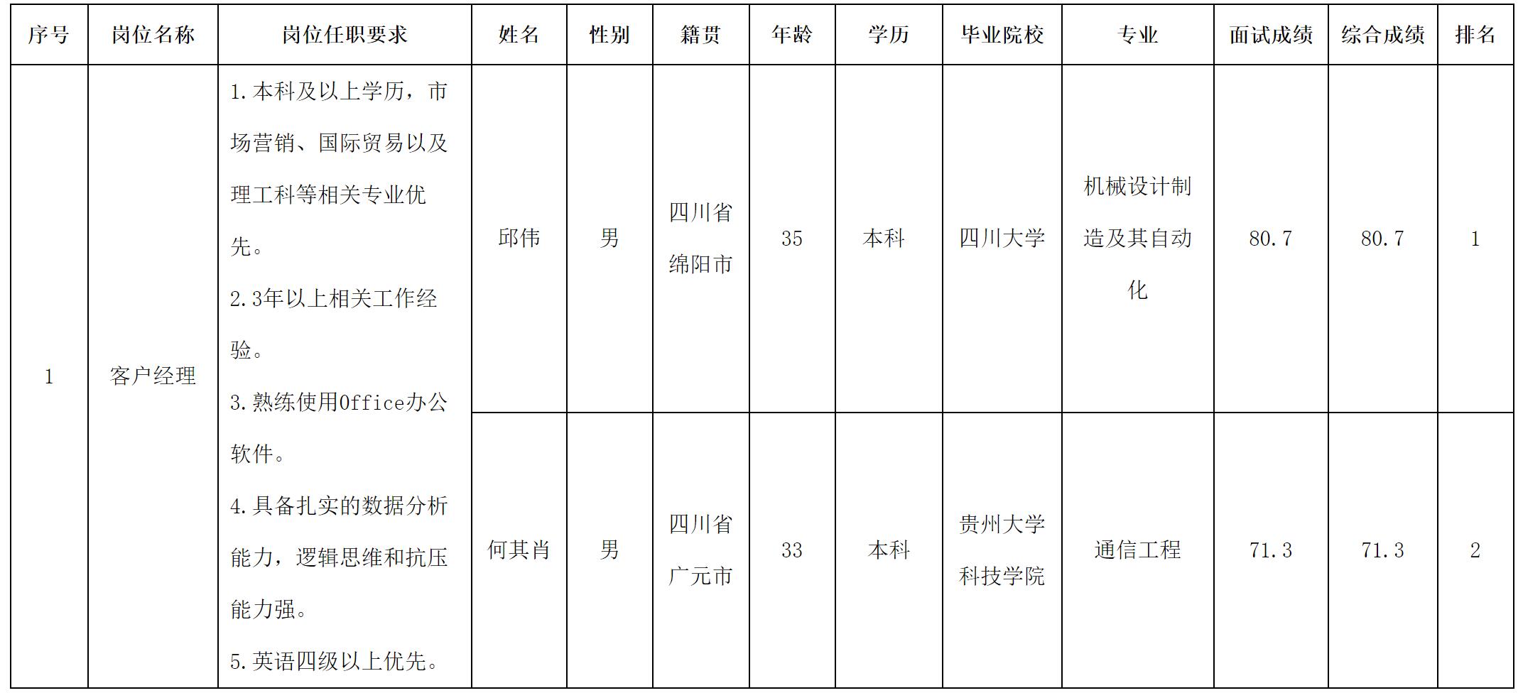 根據(jù)四川能創(chuàng)智電科技有限責(zé)任公司發(fā)布的招聘公告及招聘相關(guān)規(guī)定,現(xiàn)將測(cè)試成績(jī)予以公示。