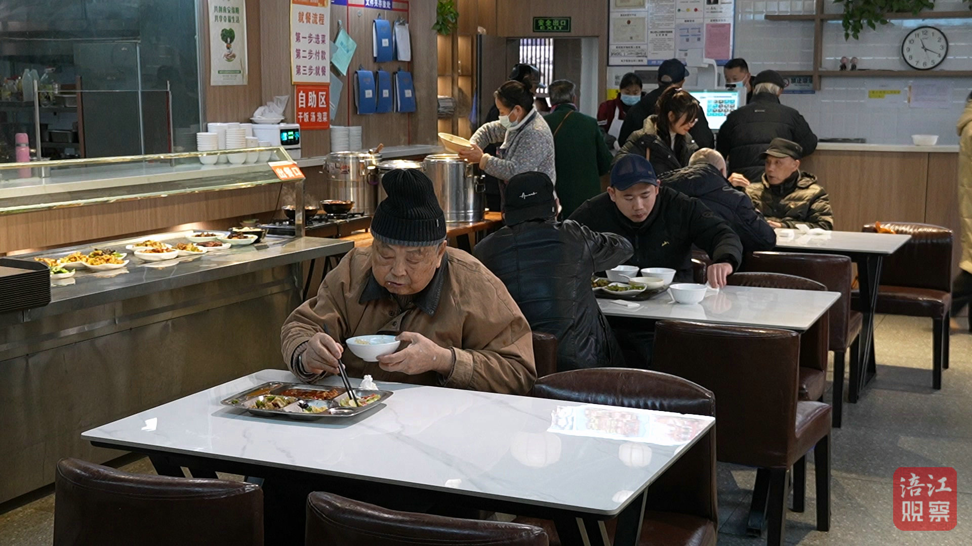 餐廳里煙火氣十足,老人們三三兩兩一桌,邊吃邊聊,一張張笑臉洋溢著當下的滿足。
