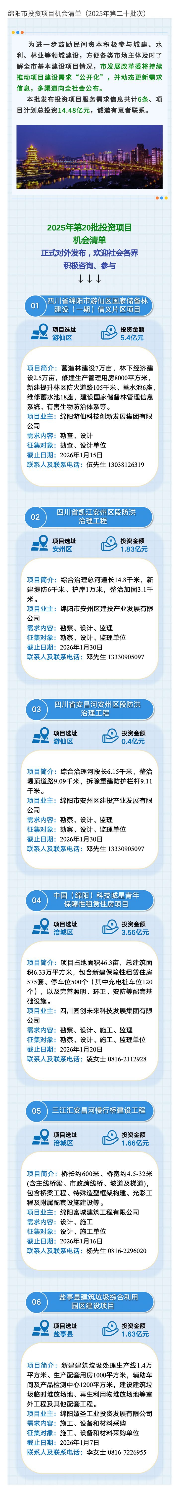綿陽市投資項(xiàng)目機(jī)會(huì)清單(2025年第二十批次)
