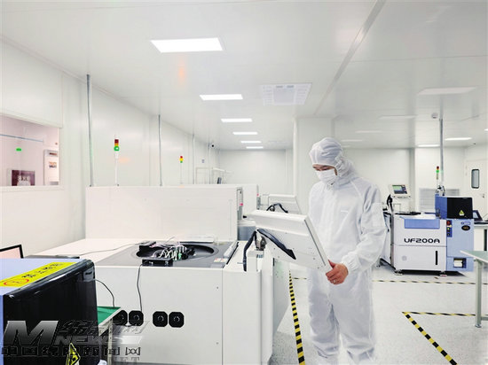 工作人員在生產(chǎn)線上調(diào)試參數(shù)。