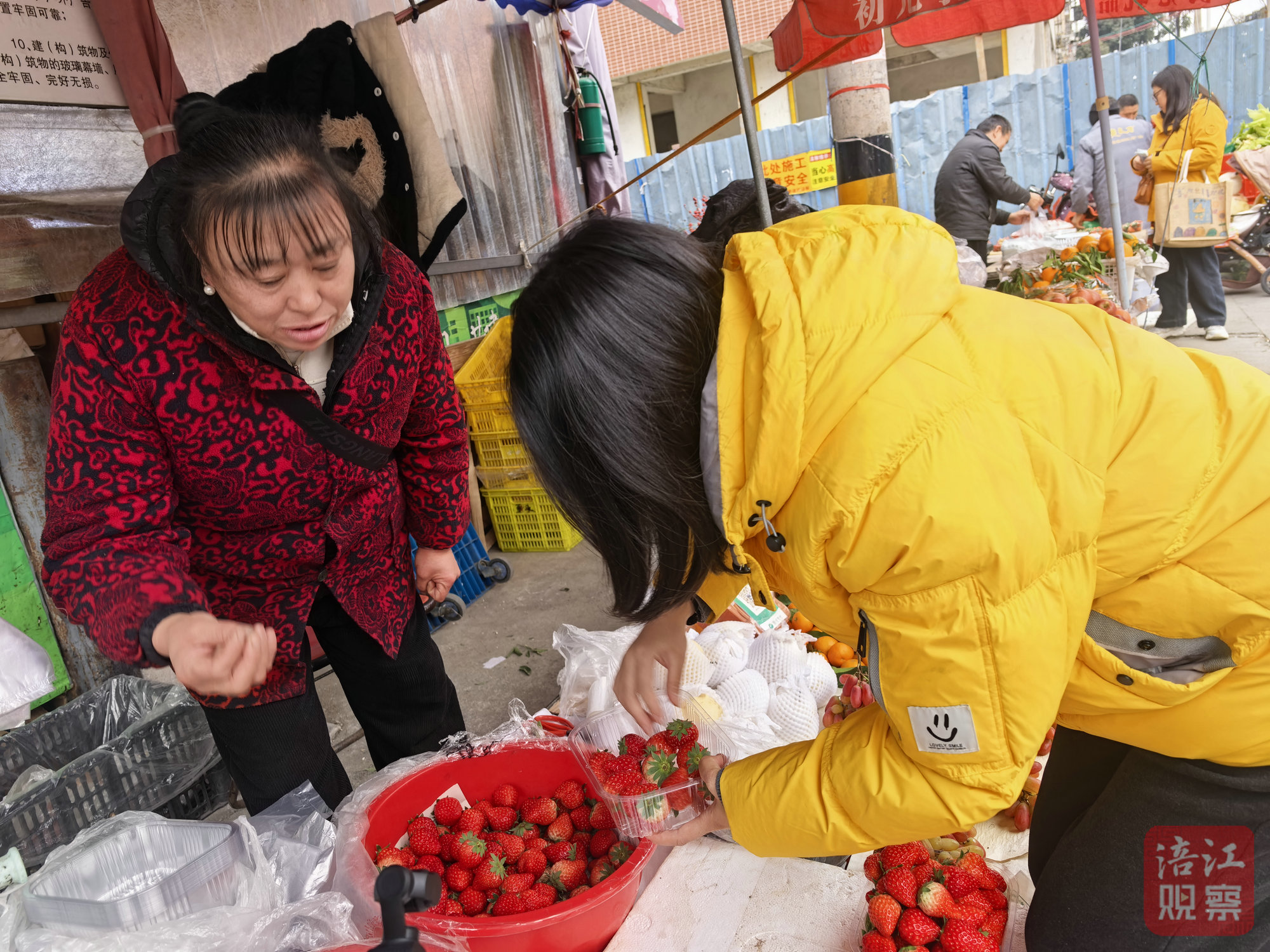 “這草莓是本地青義鎮(zhèn)產(chǎn)的,今早剛摘的,甜得很!”水果攤主王大姐笑著對(duì)過(guò)往市民介紹,她的竹籃里擺滿了紅彤彤的草莓,吸引不少市民駐足。