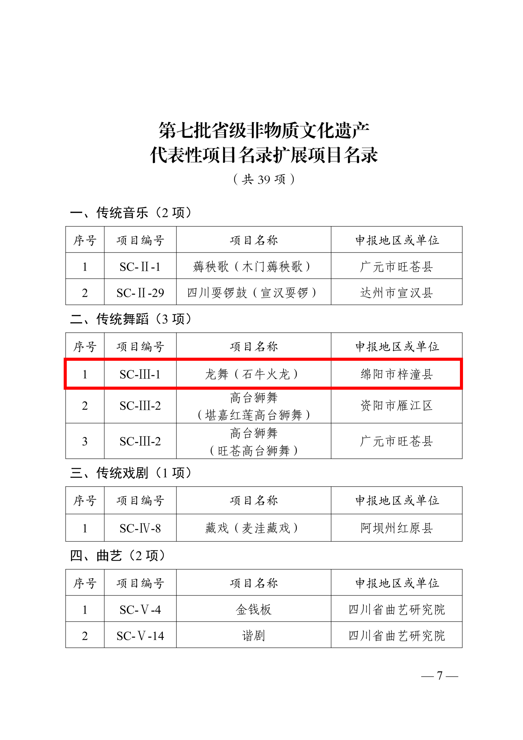 關(guān)于公布第七批省級(jí)非物質(zhì)文化遺產(chǎn)代表性項(xiàng)目名錄的通知