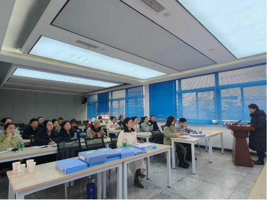 工作匯報環(huán)節(jié),該校教科室副主任謝琴以“深耕專業(yè)成長路,青藍(lán)相映綻芳華”為主題,就該校教師專業(yè)成長體系建設(shè)、青藍(lán)工程實施成效等相關(guān)工作進(jìn)行了專題匯報,系統(tǒng)展示了該校在教師梯隊培養(yǎng)、校本研修模式等方面的實踐與成效。