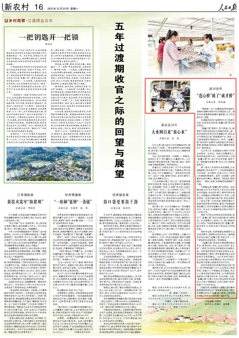 12月29日,《人民日?qǐng)?bào)》刊發(fā)《五年過渡期收官之際的回望與展望(鄉(xiāng)村觀察·過渡期這五年)》文章,關(guān)注了浙川協(xié)作推進(jìn)的職業(yè)培訓(xùn)項(xiàng)目,通過產(chǎn)教融合、訂單培養(yǎng)和實(shí)訓(xùn)基地建設(shè),精準(zhǔn)對(duì)接?xùn)|部產(chǎn)業(yè)需求與西部勞動(dòng)力資源,讓綿陽(yáng)學(xué)子奔向更廣闊的天地。全文報(bào)道如下: