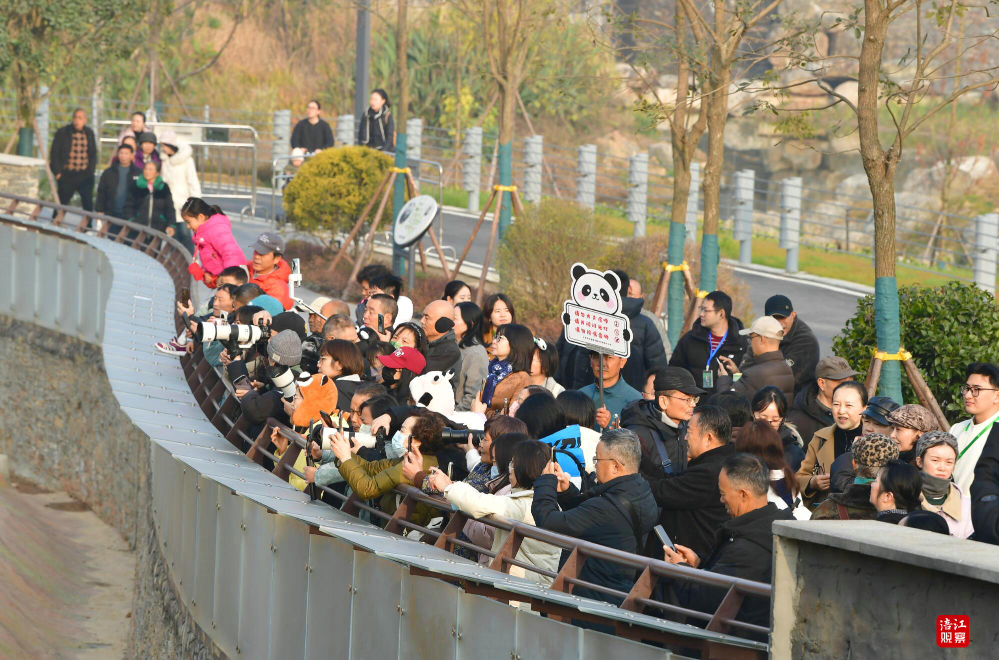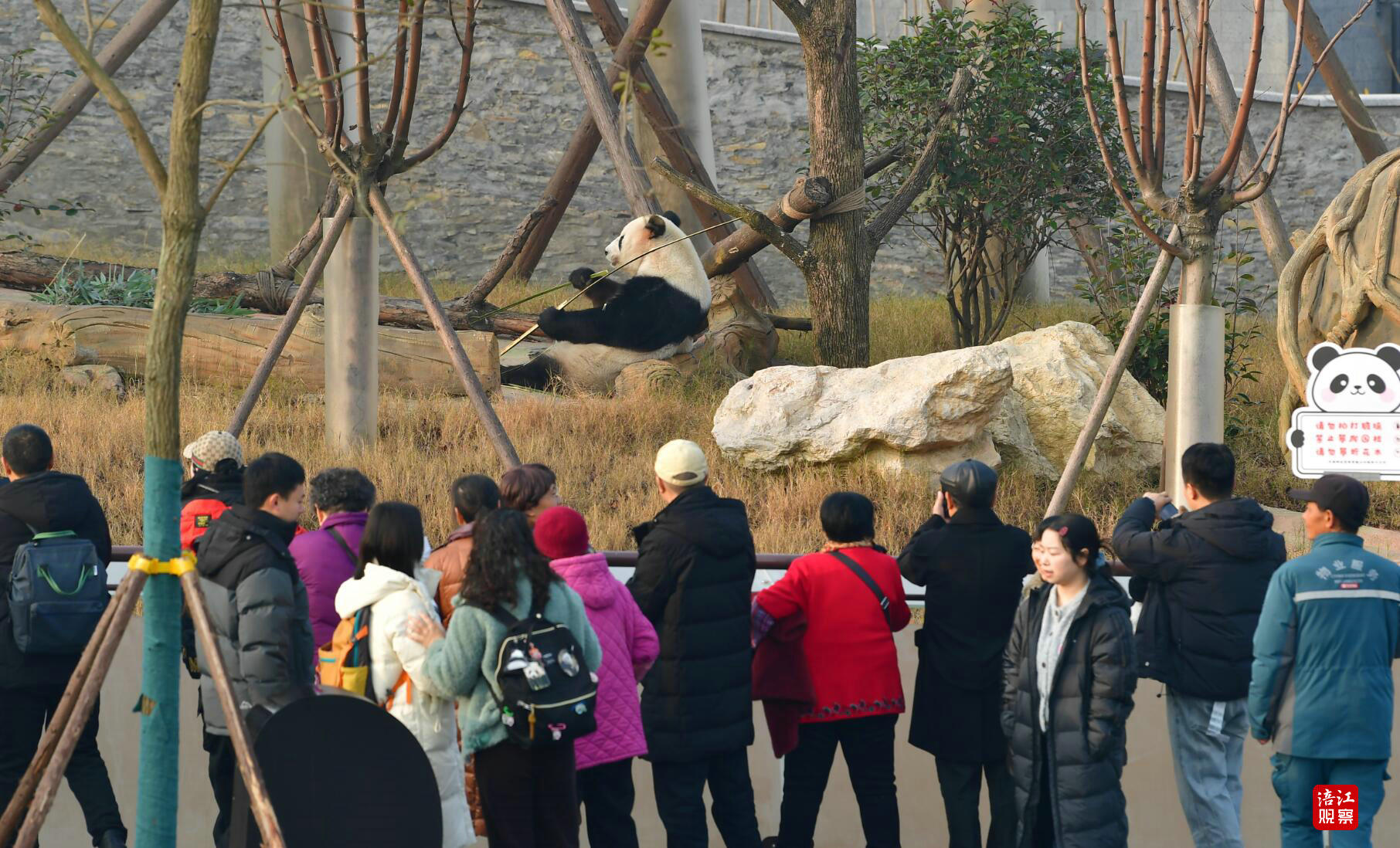 盡管冬日清晨寒意猶存,但園區(qū)入口處早已洋溢著熱切期待的氛圍。不少游客頭上戴著熊貓造型的發(fā)卡,排隊入園。