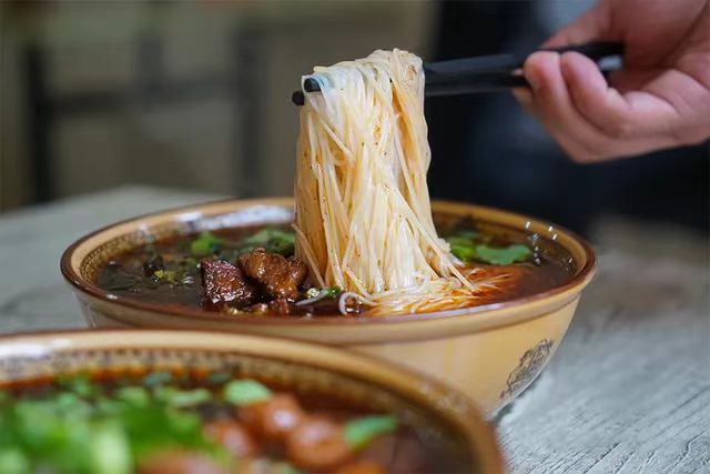 ◎綿陽米粉制作技藝造就了當(dāng)?shù)貥O具特色的傳統(tǒng)美食;