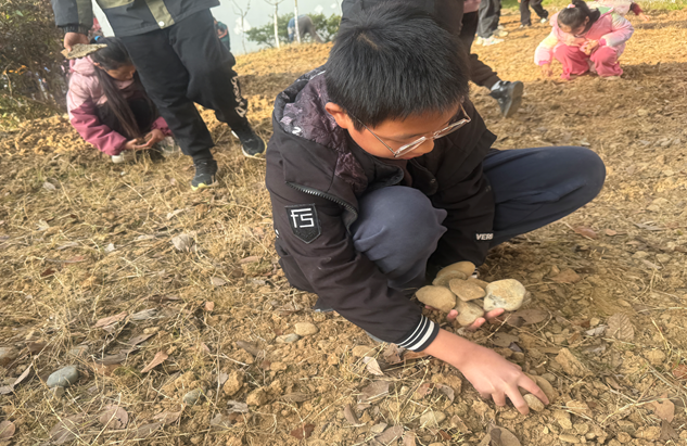 活動中,孩子們熱情高漲,紛紛化身“環(huán)境小衛(wèi)士”。他們來到學?;▓@,分工協(xié)作,不怕臟、不怕累,用小手將散落在草叢里、小徑旁的廢棄石頭逐一撿拾起來,并分類搬運至指定地點。經(jīng)過一番努力,花園里的碎石雜物被清理得干干凈凈,原本略顯雜亂的花園煥然一新。