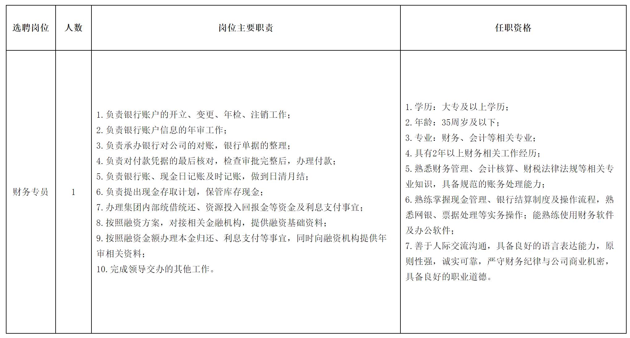 財務(wù)部 財務(wù)專員1人