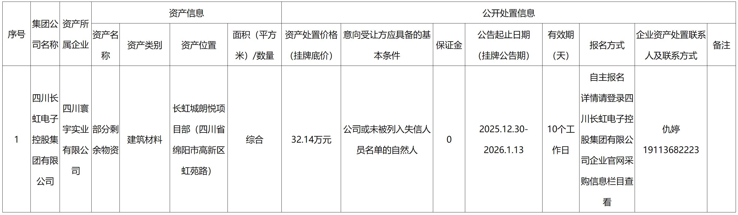 四川寰宇實(shí)業(yè)有限公司資產(chǎn)處置公告