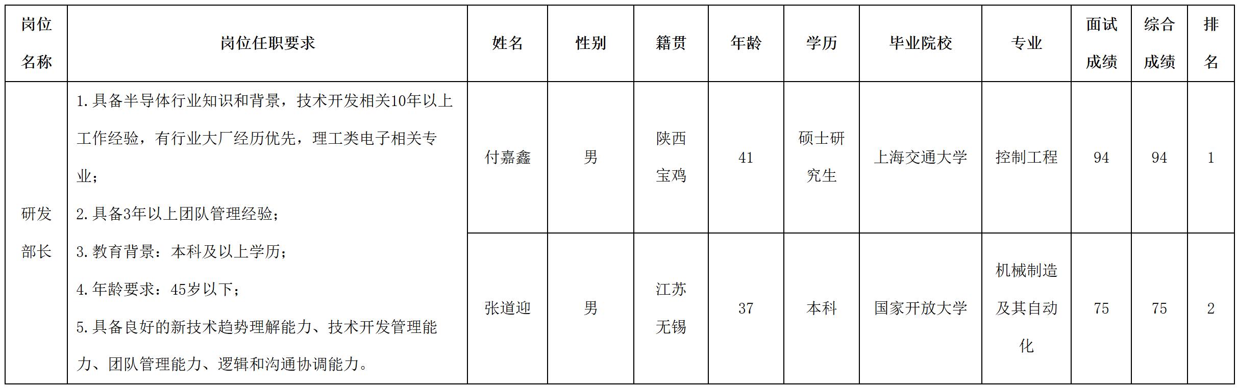 根據(jù)四川啟賽微電子有限公司發(fā)布的招聘公告及招聘相關(guān)規(guī)定,現(xiàn)將面試成績(jī)予以公示。