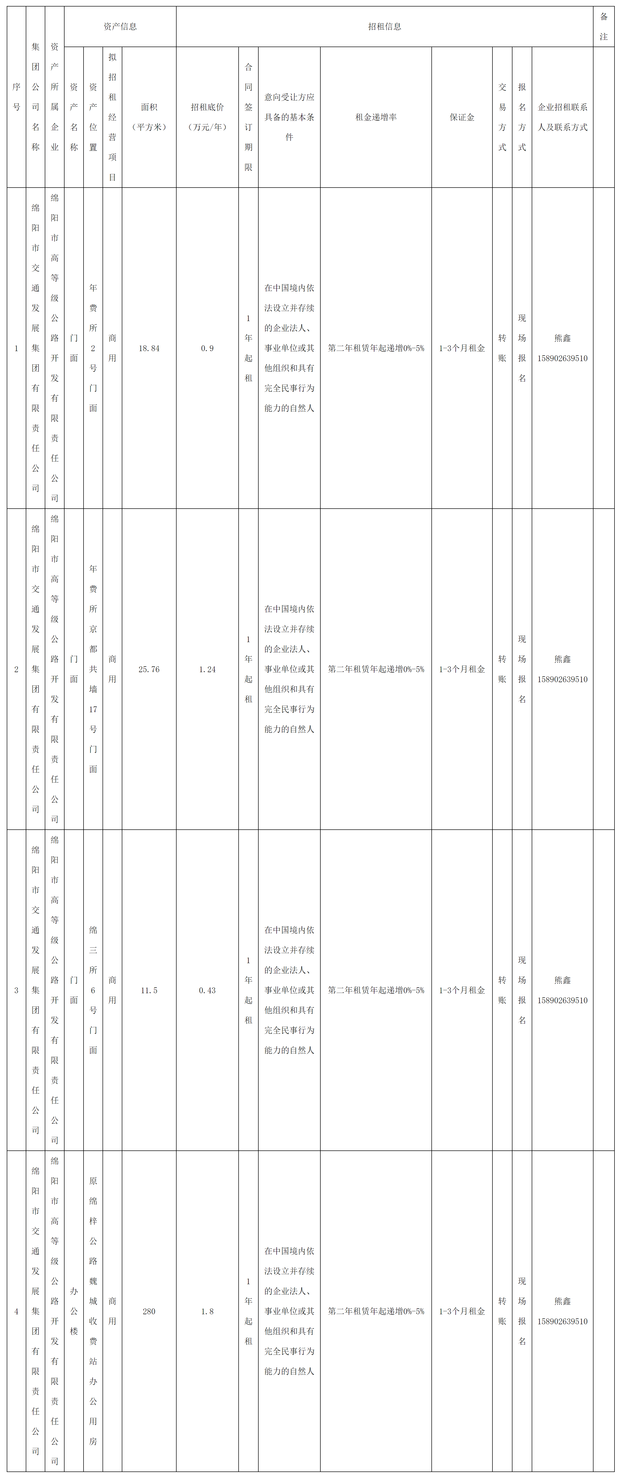 綿陽市高等級公路開發(fā)有限責(zé)任公司現(xiàn)有部分空置場院對外公開招租,歡迎有意向的單位、個(gè)體工商戶、自然人報(bào)名競價(jià),現(xiàn)將相關(guān)事宜公告如下: