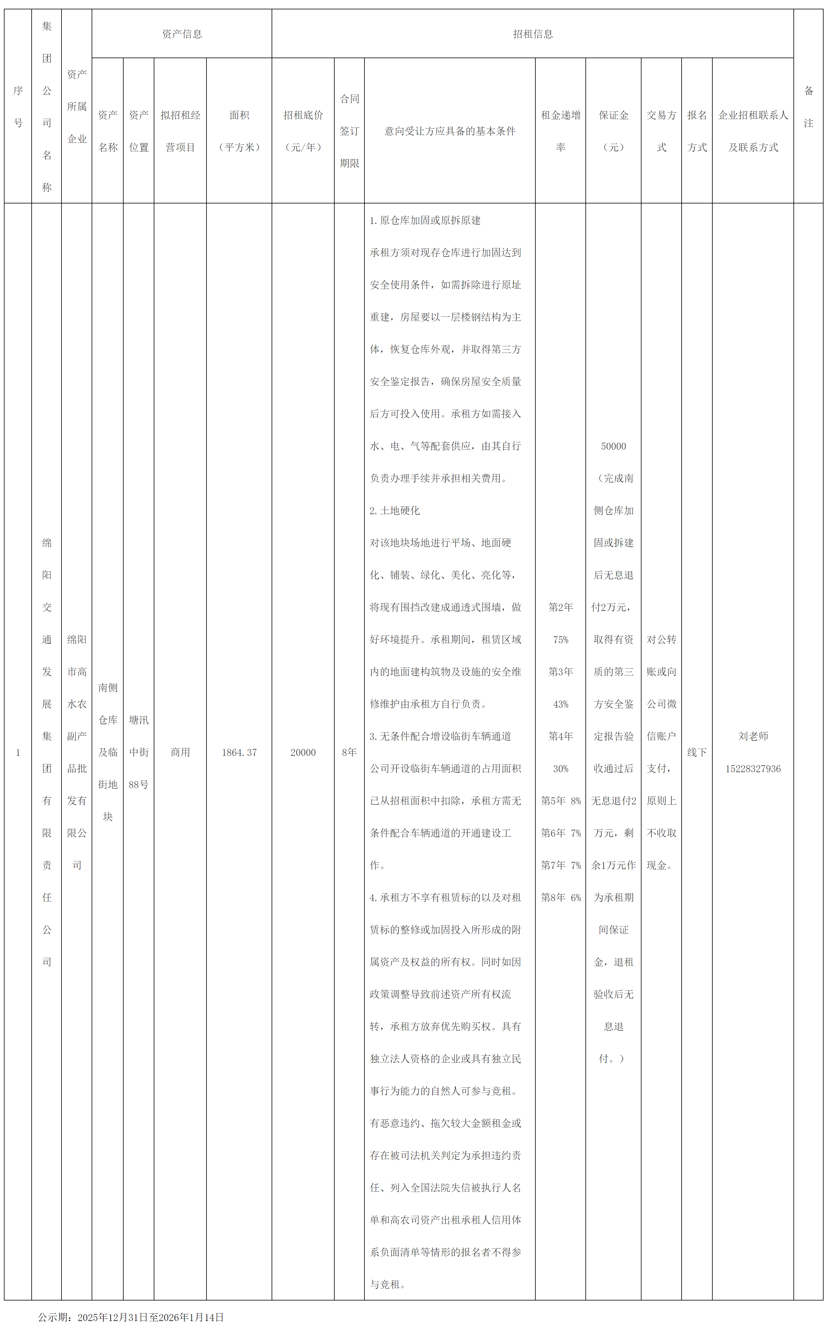 綿陽(yáng)市高水農(nóng)副產(chǎn)品批發(fā)有限公司資產(chǎn)出租公告