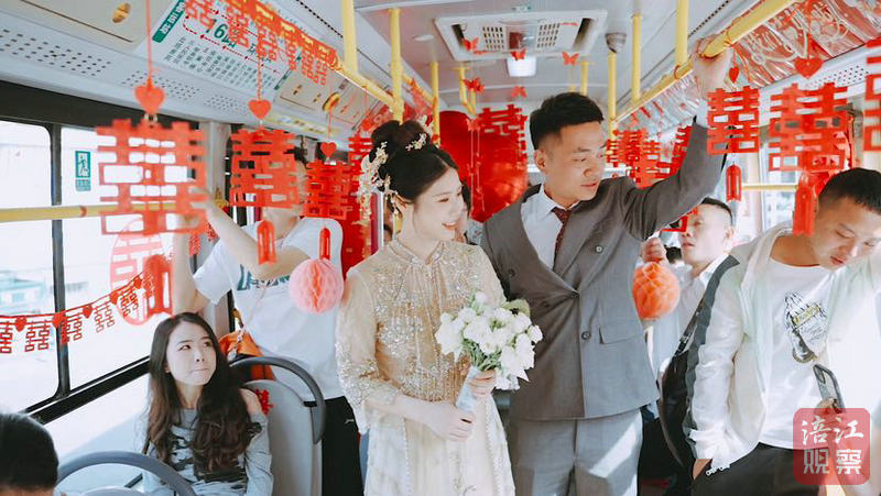 新娘諾媛說:“現(xiàn)在國家提倡綠色環(huán)保,‘公交婚禮’接親一趟的價格在600元左右,比較經(jīng)濟實惠,而且親友聚在一輛車?yán)?,氛圍超好?rdquo;