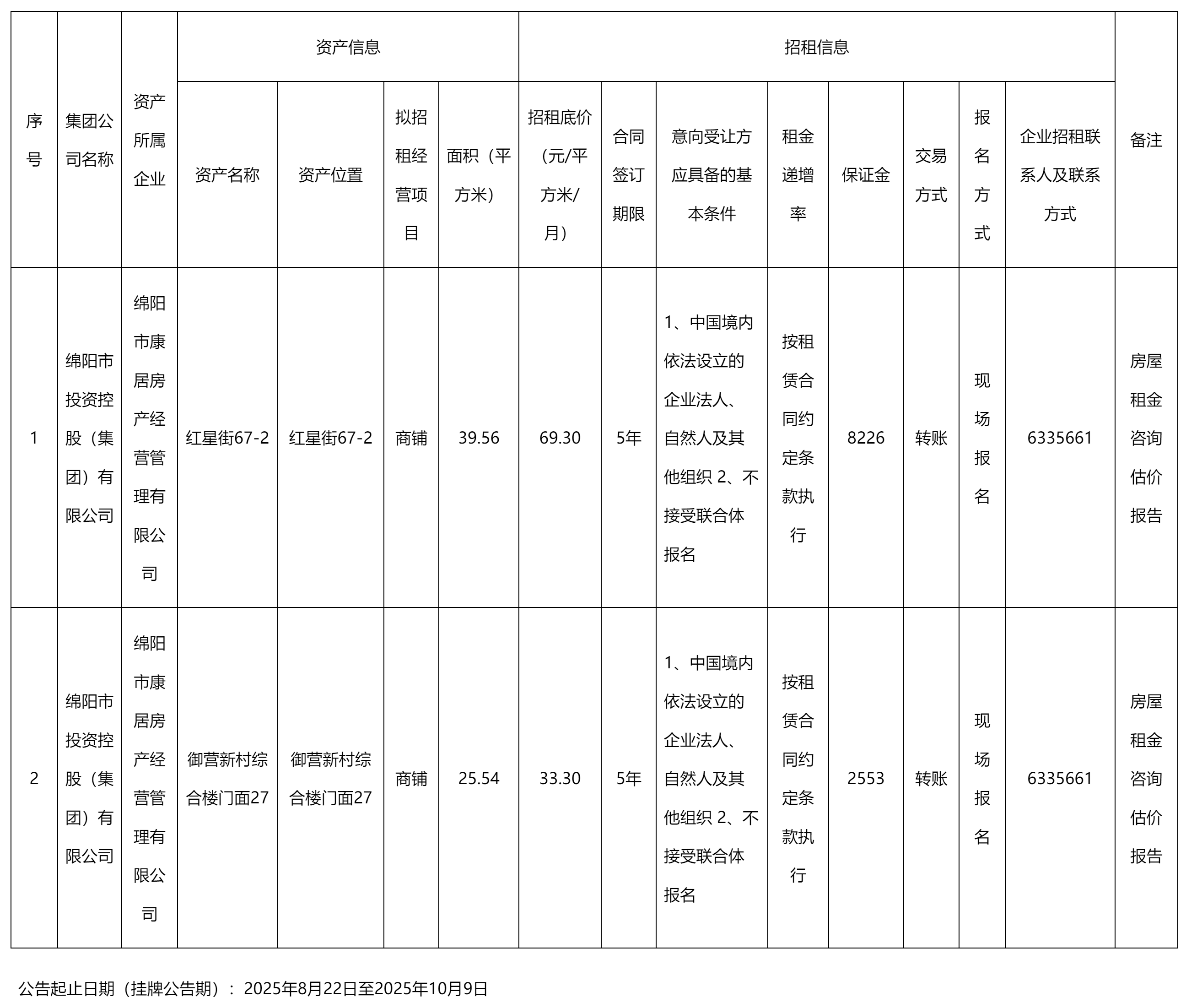 綿陽(yáng)市康居房產(chǎn)經(jīng)營(yíng)管理有限公司資產(chǎn)出租公告