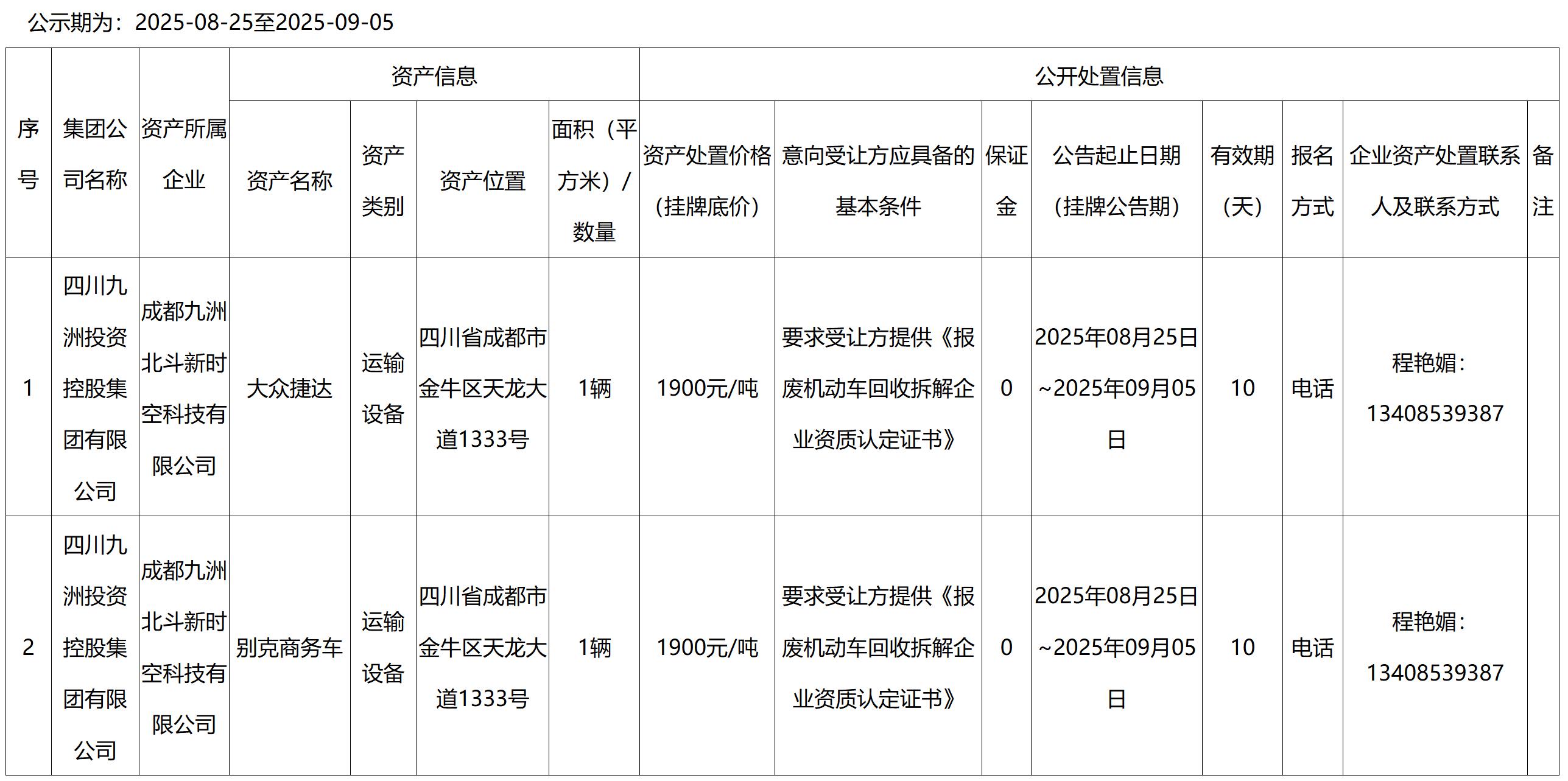 成都九洲北斗新時空科技有限公司資產(chǎn)處置公告