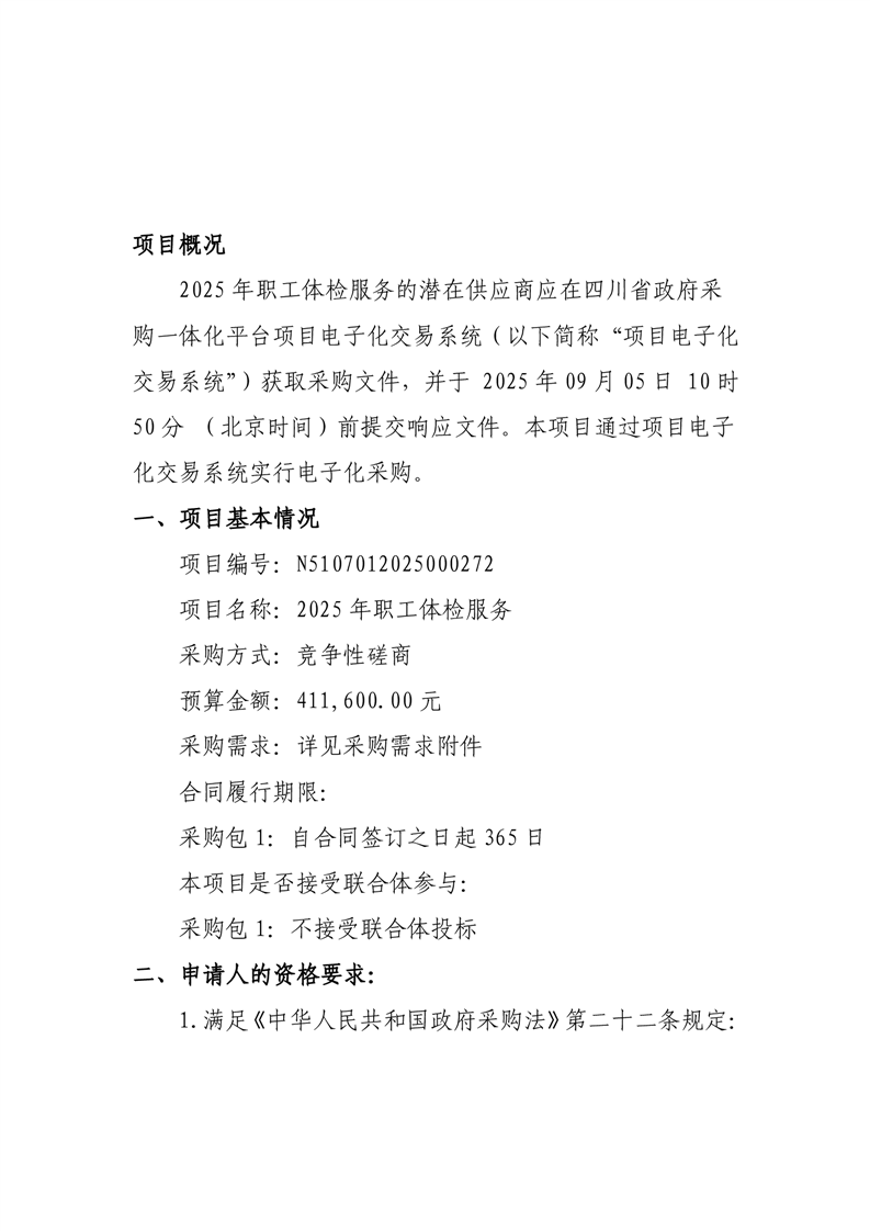 綿陽市發(fā)展和改革委員會(huì)2025年職工體檢服務(wù)競爭性磋商公告