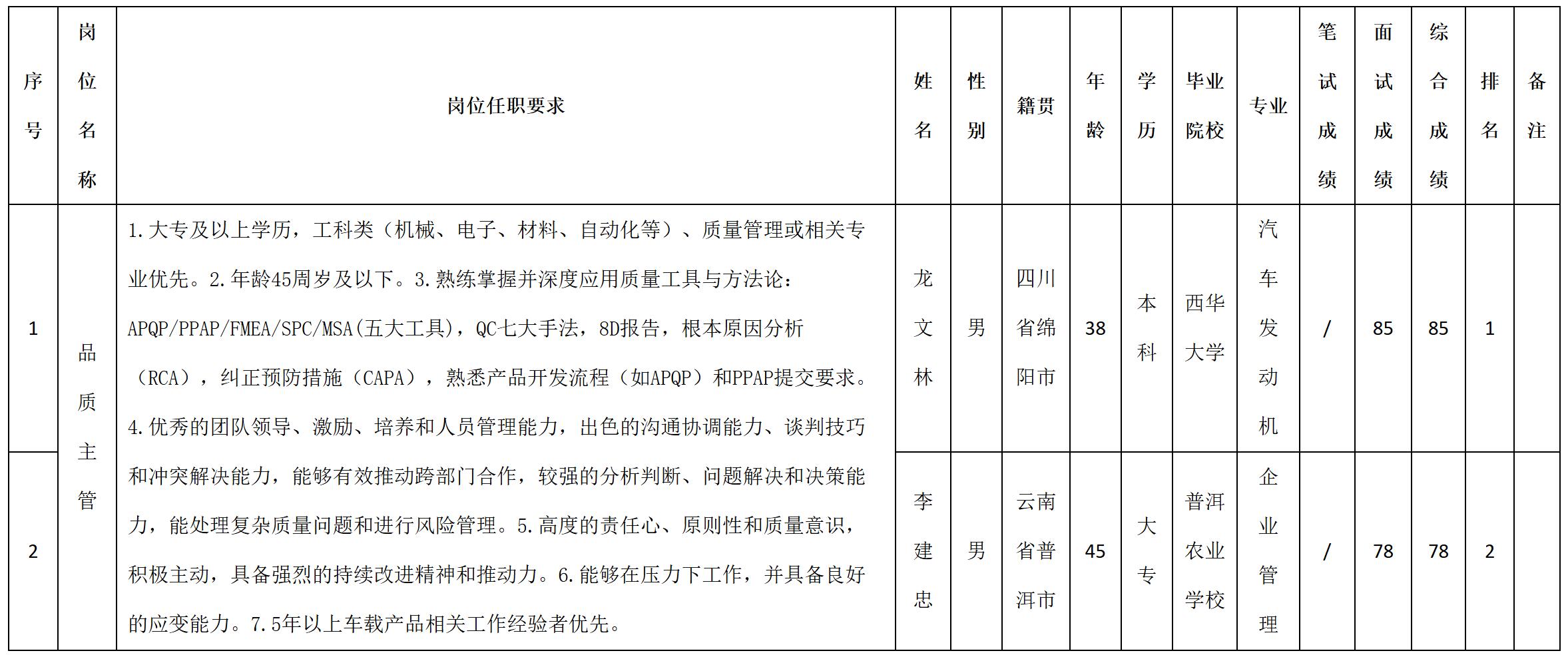 根據(jù)四川安和精密電子電器股份有限公司發(fā)布的招聘公告及招聘相關規(guī)定,經(jīng)筆試、面試等程序,現(xiàn)將筆試(面試)成績予以公示。