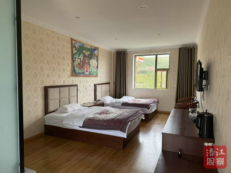 雖說一棟房子只有10個房間,但根據(jù)不同需求設置了單間、標間還有套房。房間裝修將現(xiàn)代和藏區(qū)元素相互融合,看起來十分雅致。