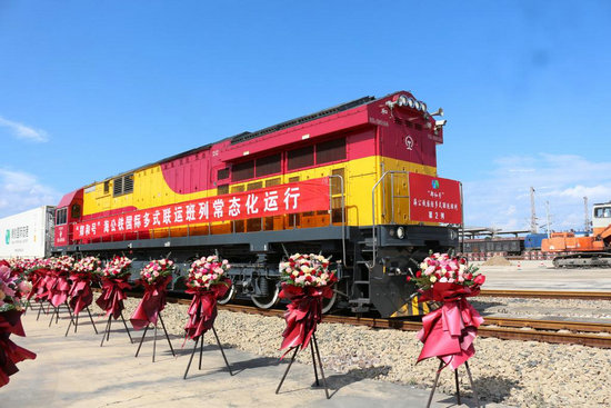 8月28日下午拍攝的“鄭和號(hào)”海公鐵國(guó)際多式聯(lián)運(yùn)班列。新華社發(fā)