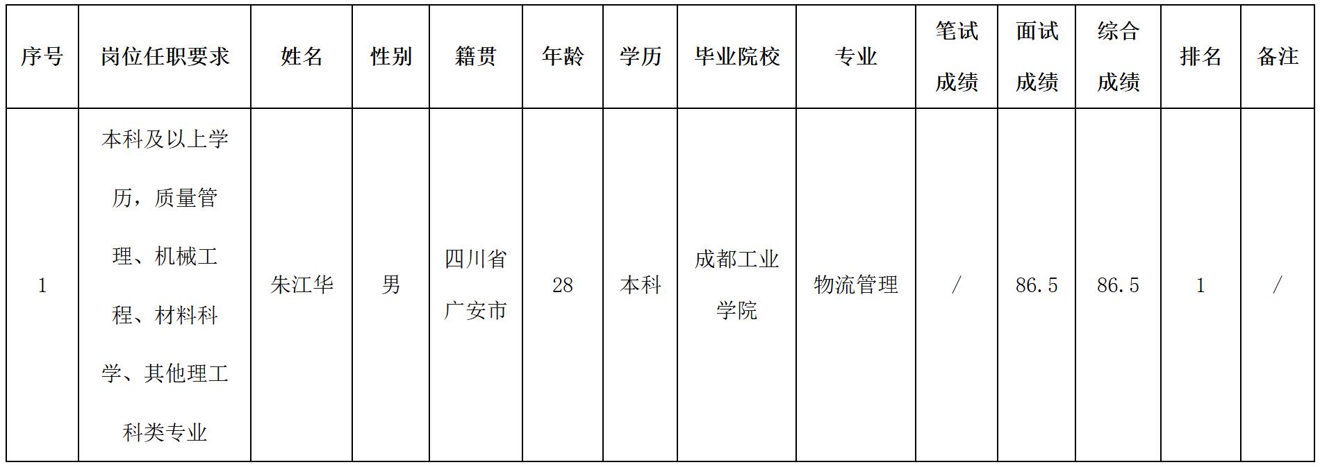 根據(jù)四川波鴻實業(yè)有限公司發(fā)布的招聘公告及招聘相關規(guī)定,經(jīng)面試等程序,現(xiàn)將面試成績予以公示。