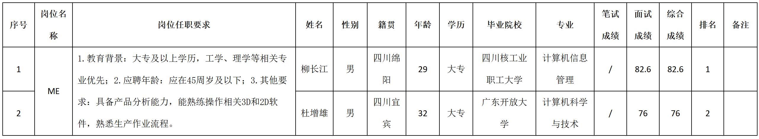 根據(jù)四川九州電子科技股份有限公司發(fā)布的招聘公告及招聘相關(guān)規(guī)定,經(jīng)筆試、面試等程序,現(xiàn)將筆試(面試)成績予以公示。