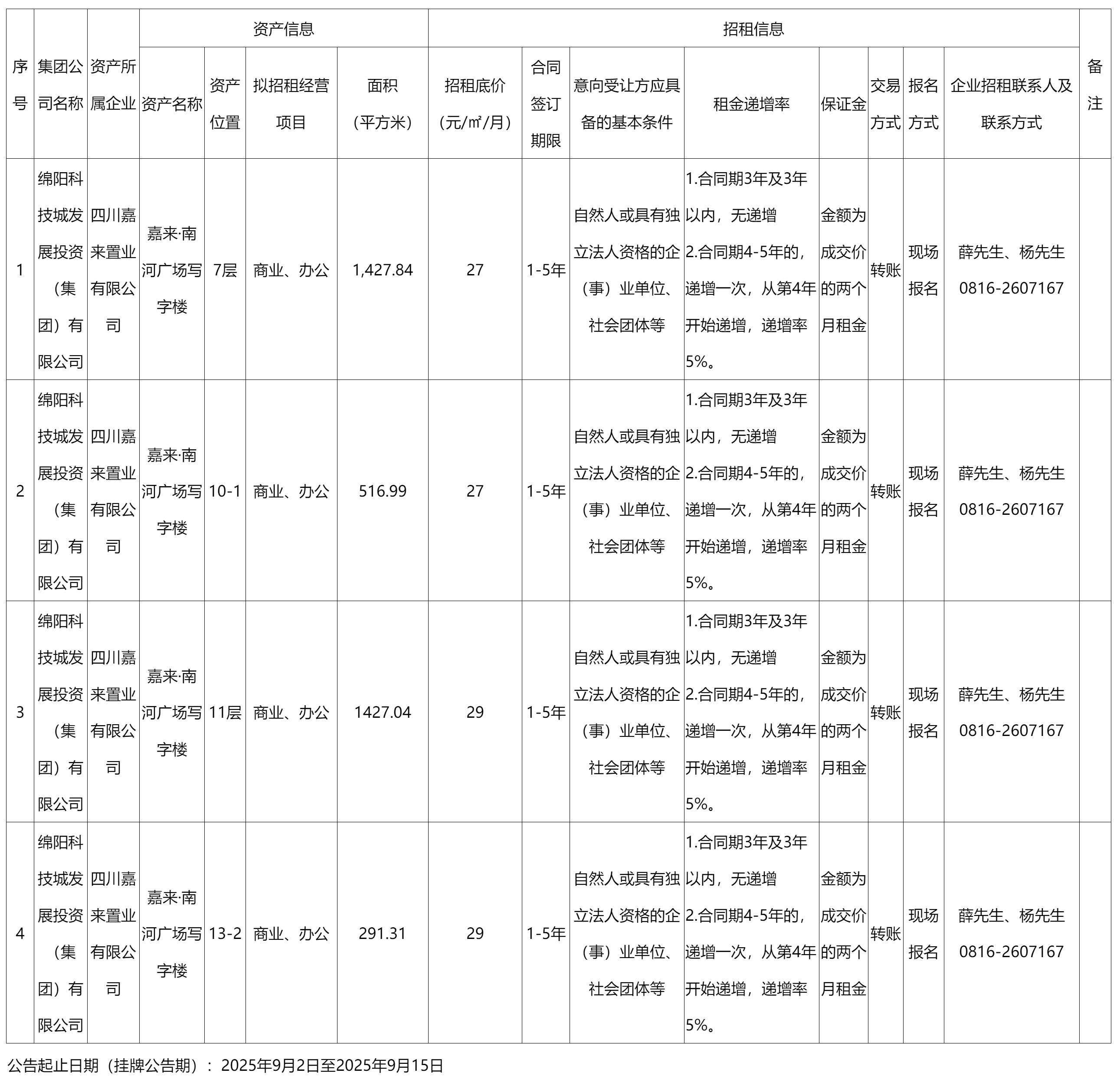 四川嘉來置業(yè)有限公司資產(chǎn)出租公告