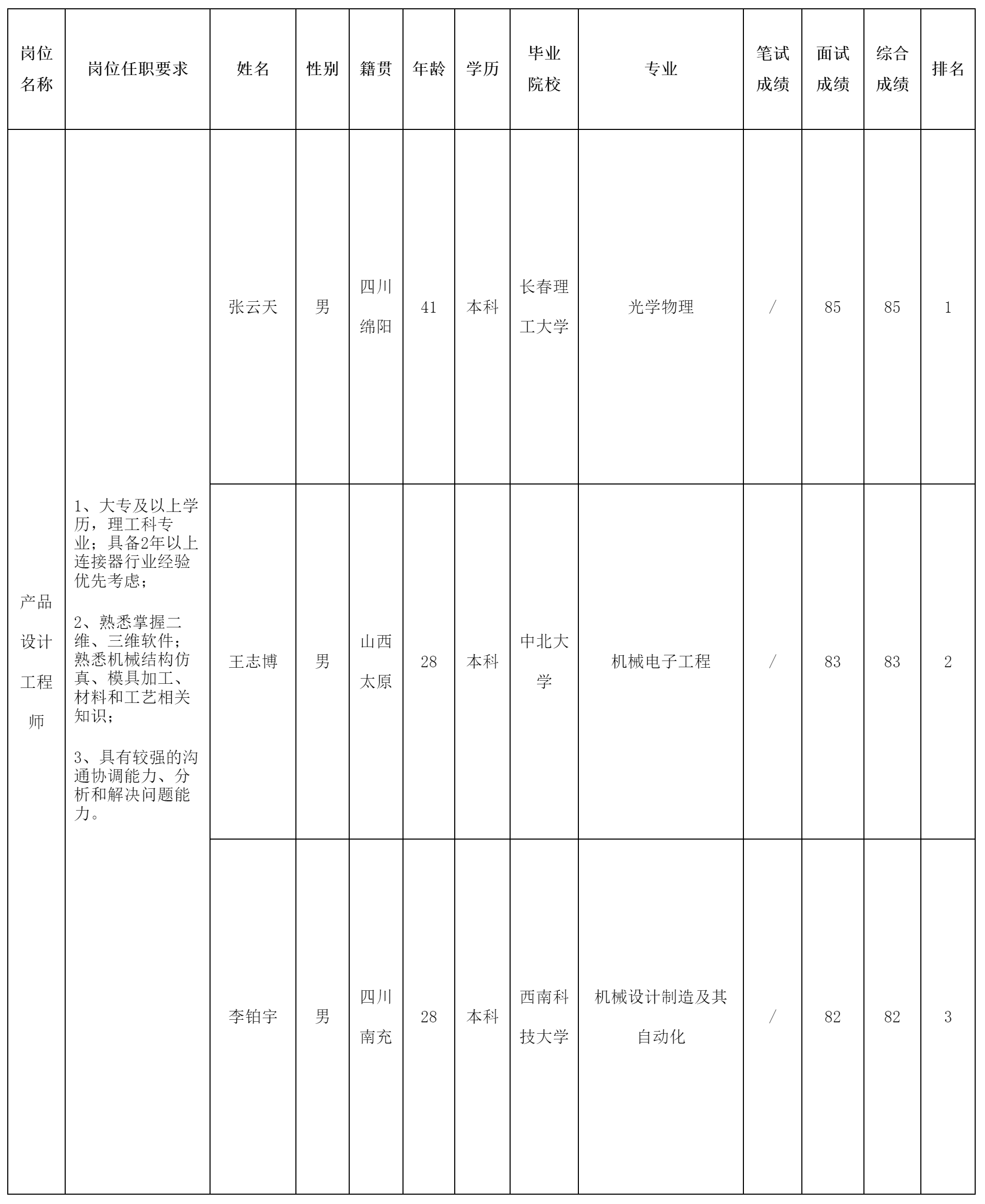 根據(jù)四川華豐科技股份有限公司發(fā)布的招聘公告及招聘相關(guān)規(guī)定,經(jīng)筆試、面試等程序,現(xiàn)將筆試(面試)成績予以公示。