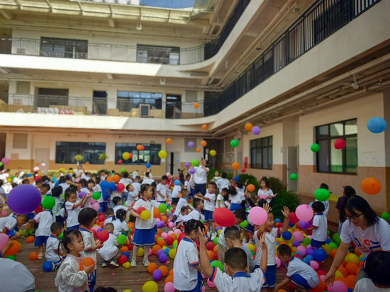 接下來(lái)的律動(dòng)游戲《顏色歌》和“表情變變變”別具特色,孩子們?cè)跉g快的節(jié)奏中認(rèn)識(shí)色彩、釋放天性、模仿表情,現(xiàn)場(chǎng)歡聲笑語(yǔ)不斷。“多巴胺氣球雨”環(huán)節(jié)將活動(dòng)推向高潮,數(shù)百個(gè)彩色氣球從空中傾瀉而下,孩子們興奮地接球、玩球,在五彩繽紛的氣球雨中盡情歡笑,現(xiàn)場(chǎng)化作一片歡樂(lè)的海洋。