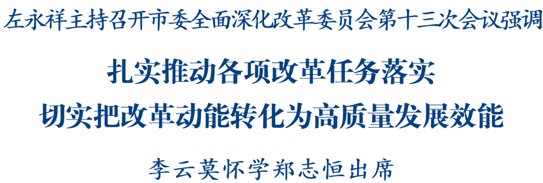 9月4日,市委全面深化改革委員會第十三次會議召開,省委常委、市委書記、市委全面深化改革委員會主任左永祥主持會議并講話。他強(qiáng)調(diào),要深入學(xué)習(xí)貫徹習(xí)近平總書記關(guān)于全面深化改革的重要論述,全面落實(shí)黨中央和省委決策部署,扎實(shí)推動各項(xiàng)改革任務(wù)落實(shí),切實(shí)把改革動能轉(zhuǎn)化為高質(zhì)量發(fā)展效能。