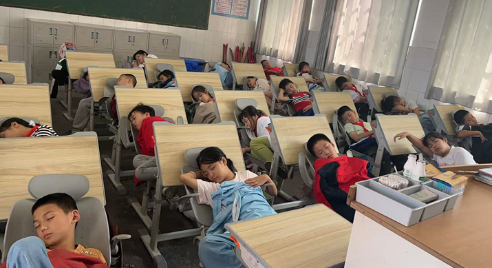高年級(jí)"睡神":各顯神通的午休達(dá)人。五年級(jí)的哥哥姐姐們?cè)缇蚲et了午睡的精髓:“學(xué)霸型”側(cè)臥如思考者,手里還攥著半截鉛筆;