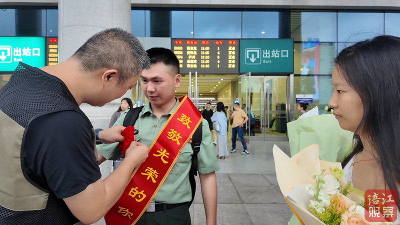 “我是來接我老公的,他是9點(diǎn)40分到站。”退役軍人家屬朱艷告訴記者,他愛人叫殷云強(qiáng),在新疆當(dāng)兵,已參軍12年了。