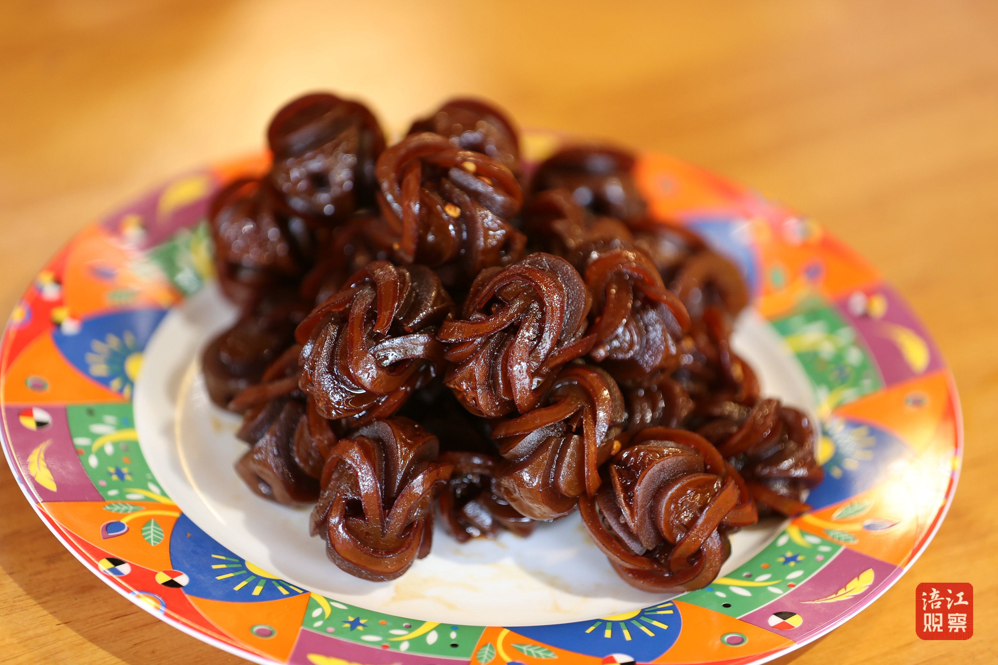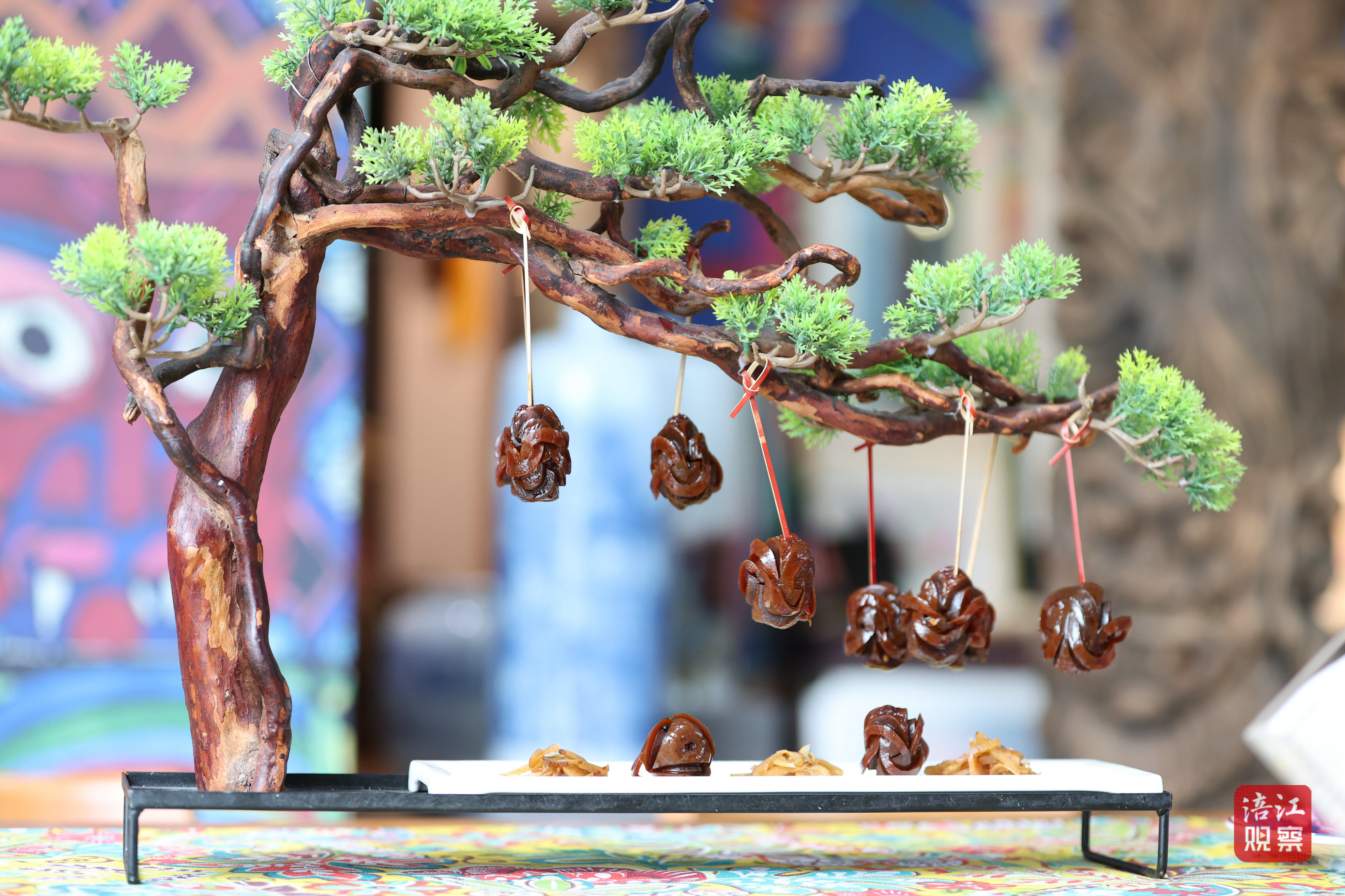 完成雕刻的套棗還需用草木灰水浸泡一夜,去澀增硬,再用開水煮制。最后用平武深山的野生蜂蜜蜜制8-12小時。“野生蜜的黏稠度能完美定型,賦予琥珀色澤。”陳力菊強調(diào)。成品套棗玲瓏剔透,入口甜而不膩,棗香與蜜香交融,真正做到了“色香味形”四絕。