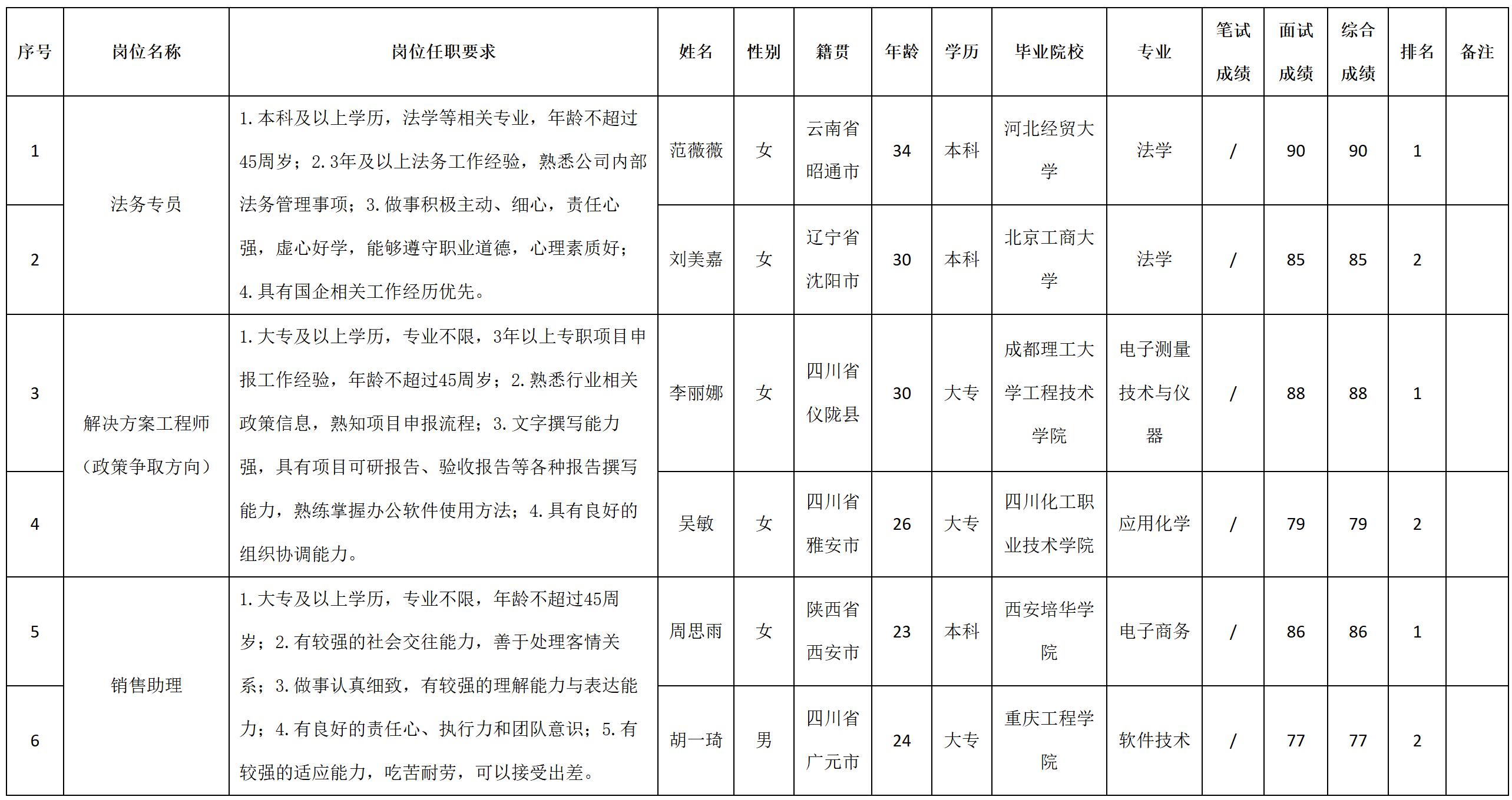 根據(jù)四川科瑞軟件有限責任公司發(fā)布的招聘公告及招聘相關規(guī)定,經(jīng)筆試、面試等程序,現(xiàn)將筆試(面試)成績予以公示。