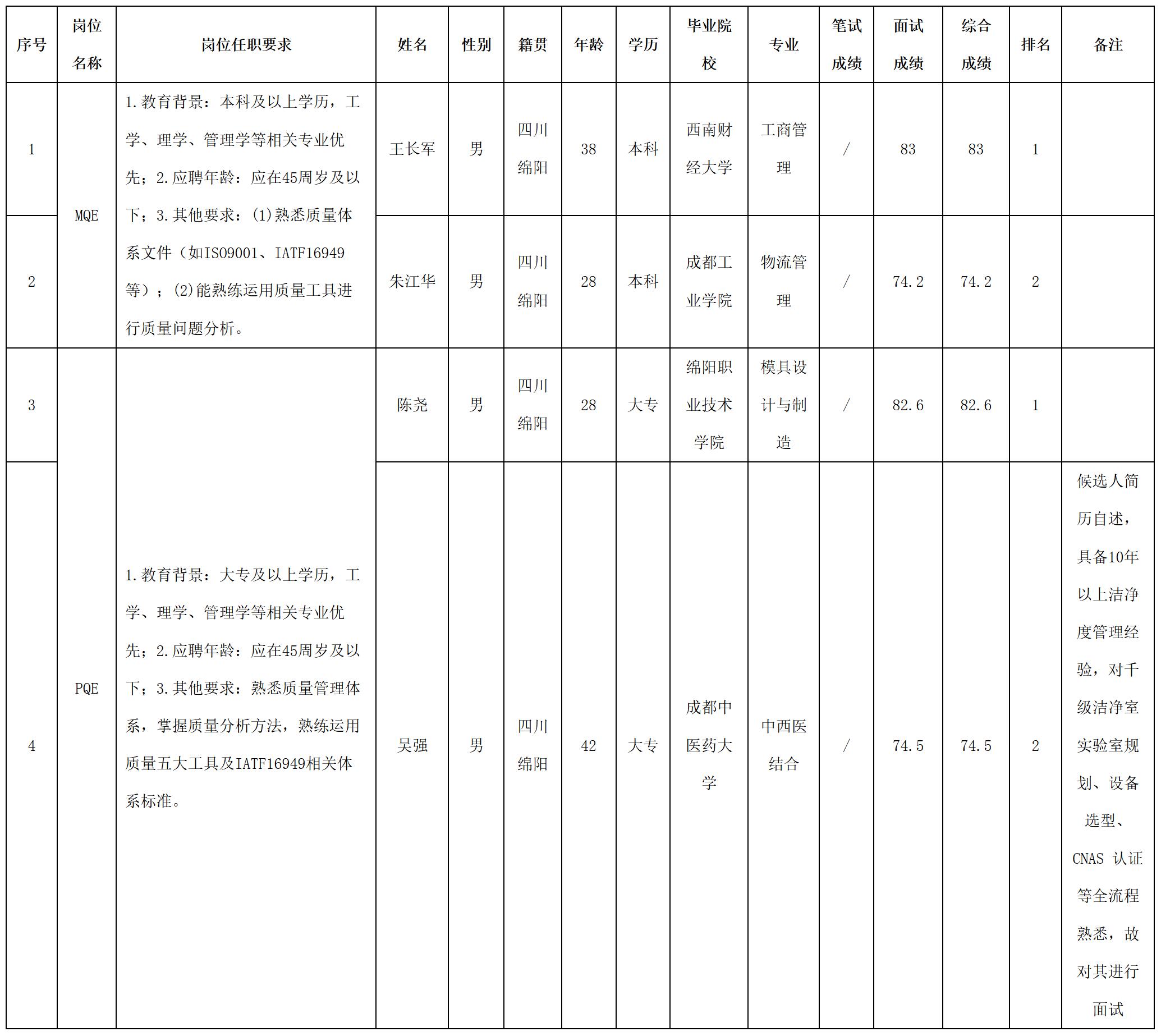 根據(jù)四川九州電子科技股份有限公司發(fā)布的招聘公告及招聘相關(guān)規(guī)定,經(jīng)筆試、面試等程序,現(xiàn)將筆試(面試)成績予以公示。