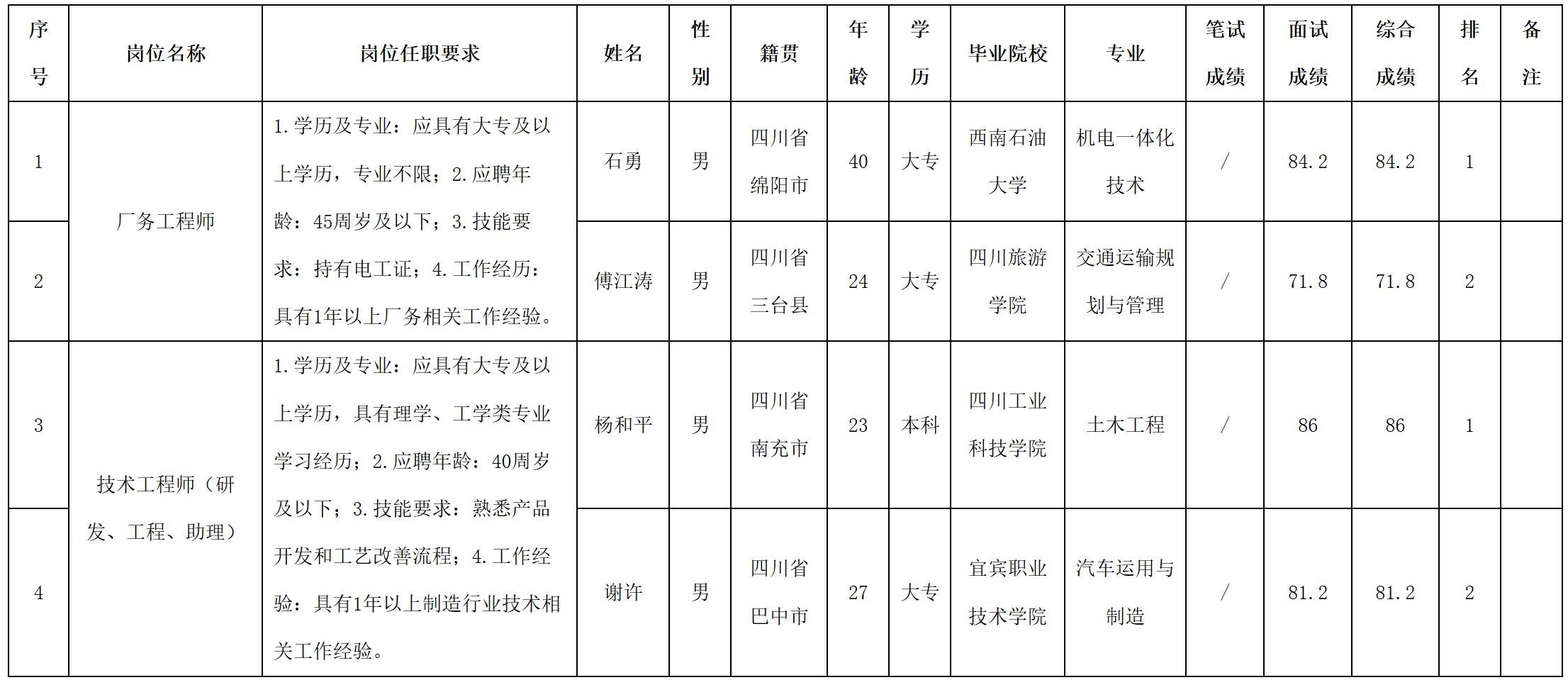 根據(jù)四川九州光電子技術(shù)有限公司發(fā)布的招聘公告及招聘相關(guān)規(guī)定,經(jīng)筆試、面試等程序,現(xiàn)將筆試(面試)成績予以公示。