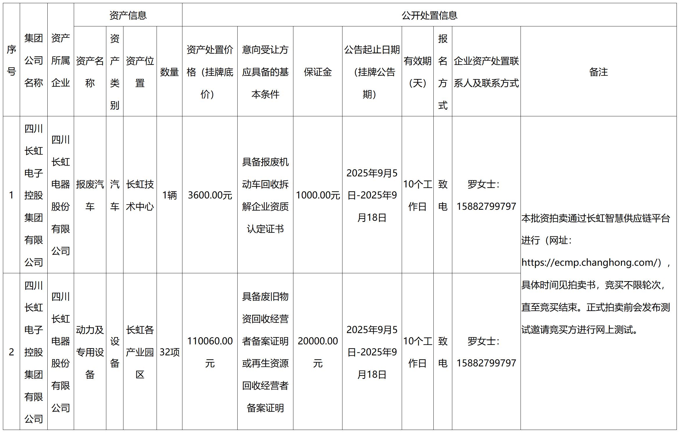 四川長虹電器股份有限公司資產(chǎn)處置公告