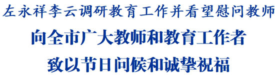 每到一處,左永祥都與學(xué)校教師代表親切交談,關(guān)切詢問工作和生活情況,向大家的辛勤付出表示感謝。他說,培養(yǎng)什么人、怎樣培養(yǎng)人、為誰培養(yǎng)人是教育的根本問題。希望全市廣大教師和教育工作者深學(xué)細(xì)悟習(xí)近平總書記關(guān)于教育的重要論述,全面落實(shí)立德樹人根本任務(wù),牢記為黨育人、為國育才初心使命,爭做新時代“四有”好老師,努力培養(yǎng)更多德智體美勞全面發(fā)展的社會主義建設(shè)者和接班人。各級黨委、政府要把教師隊(duì)伍建設(shè)作為基礎(chǔ)工作來抓,關(guān)心關(guān)愛教師,維護(hù)教師權(quán)益,在全社會營造尊師重教的良好風(fēng)尚,吸引更多優(yōu)秀人才熱心從教、精心從教、長期從教、終身從教。