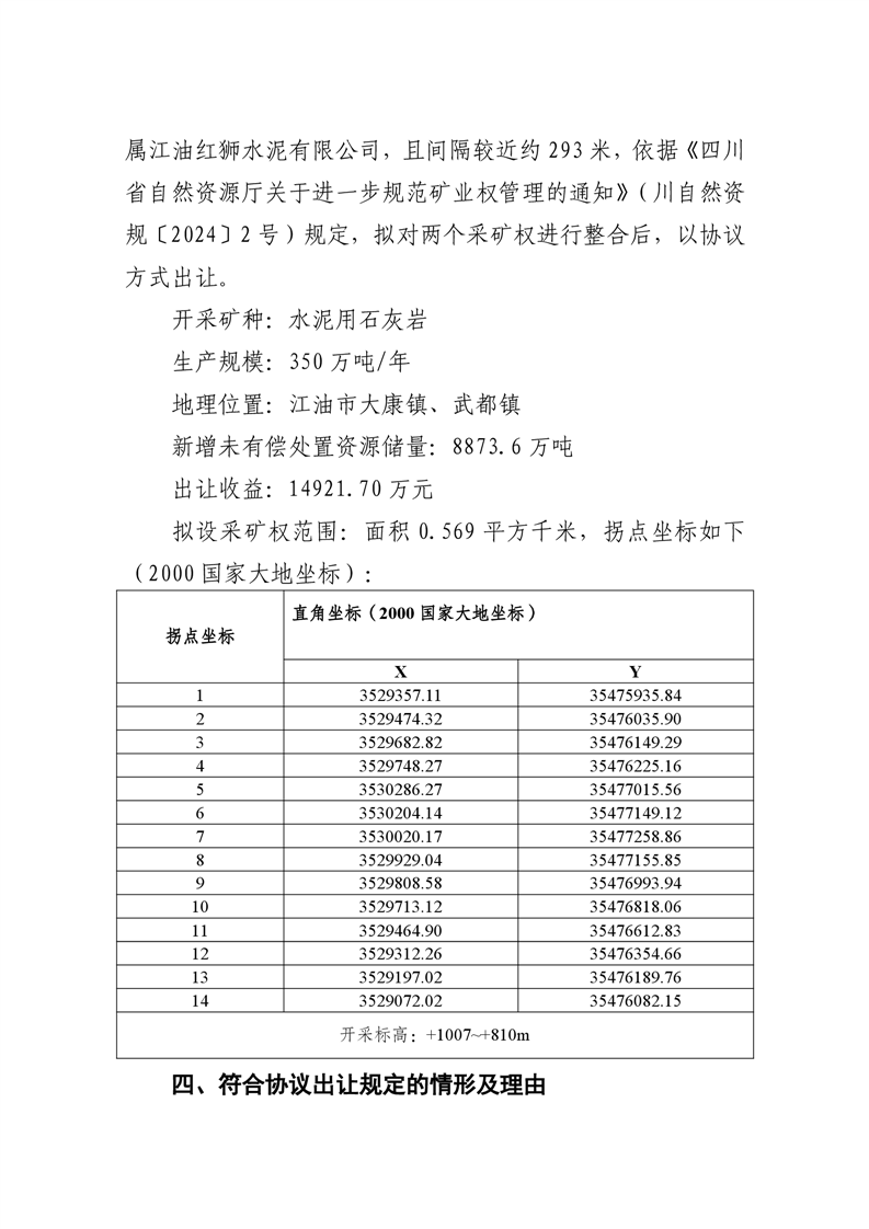 江油紅獅水泥有限公司望鄉(xiāng)臺石灰石礦采礦權(quán)協(xié)議出讓公示
