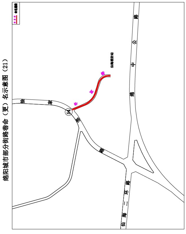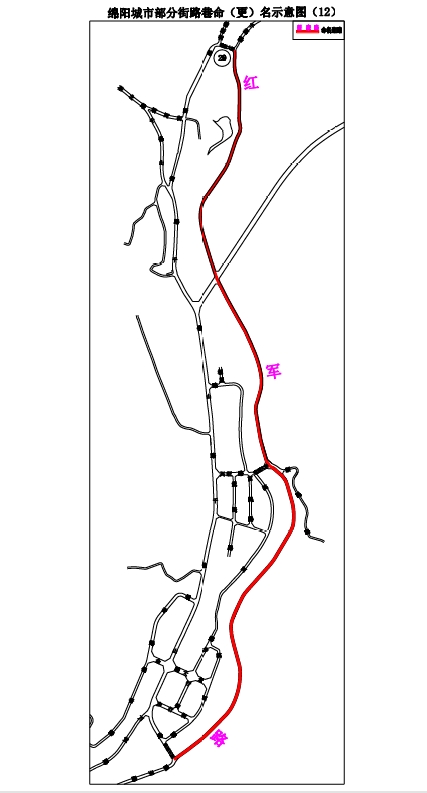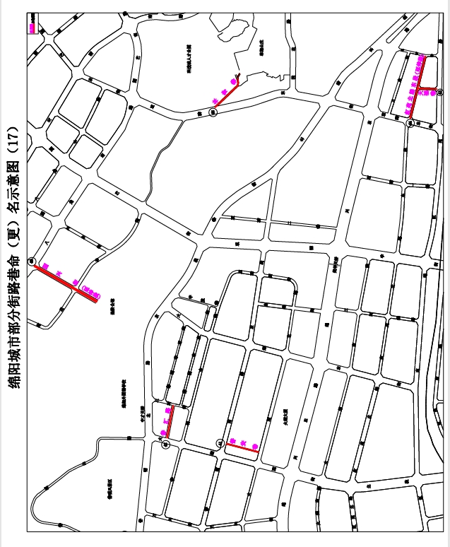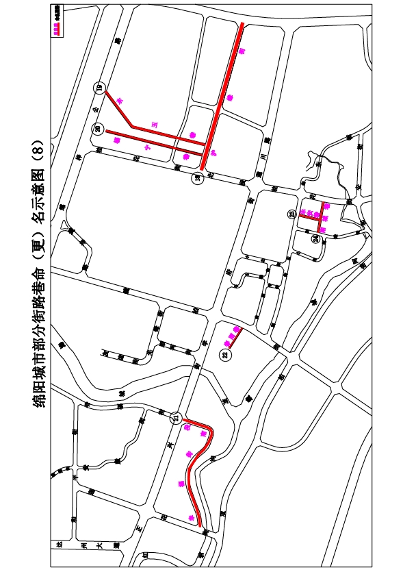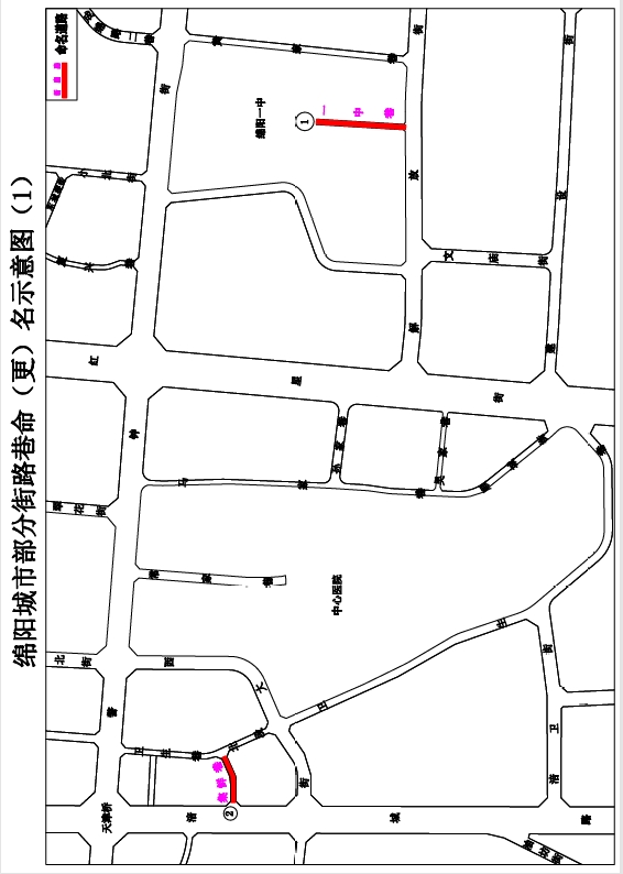 1.一中巷:解放街至綿陽(yáng)一中,南北走向,長(zhǎng)約64米,寬約8米。道路位于綿陽(yáng)一中后門(mén),擬命名“一中巷”。(見(jiàn)示意圖1)