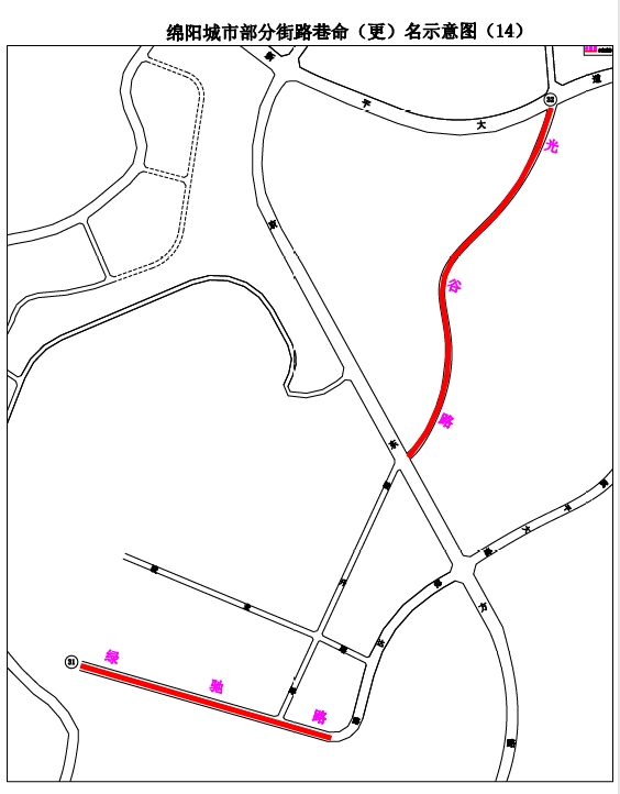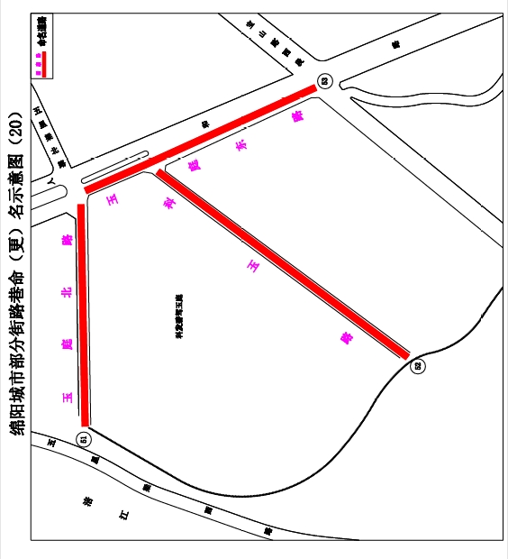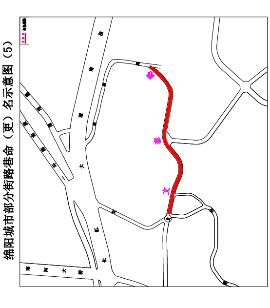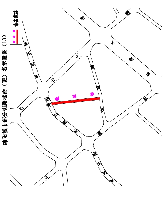 14.同源路:清華西街至玉龍北街南段,東北向西南走向,長(zhǎng)約280米,寬約20米。道路沿途有涪城區(qū)中醫(yī)醫(yī)院,中醫(yī)講究“藥食同源”,擬命名“同源路”。(見(jiàn)示意圖6)