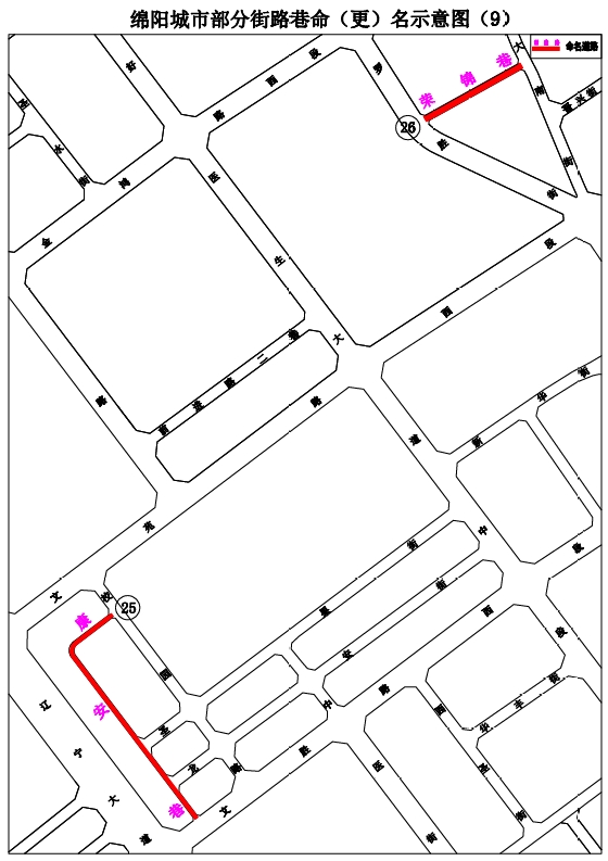 26.榮錦巷:大南街至羅勝街,東西走向,長(zhǎng)約300米,寬約12米。道路鄰近集中商貿(mào)區(qū)和學(xué)校,取繁榮欣盛、前程似錦之意,擬命名“榮錦巷”。(見(jiàn)示意圖9)