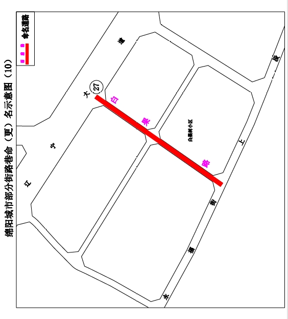 27.白果路:遼寧大道至永福街上段,南北走向,長(zhǎng)約300米,寬約15米。道路位于白果樹(shù)小區(qū)西側(cè),擬命名“白果路”。(見(jiàn)示意圖10)