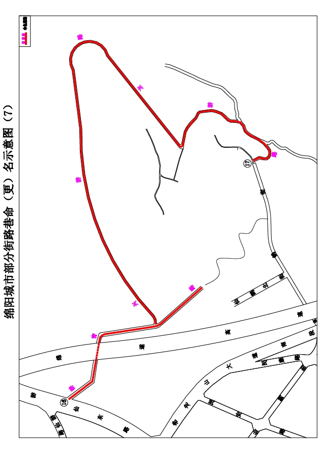 17.興游路:起于游青路,經(jīng)青龍山頂至仙鶴街,西北向東南走向,長(zhǎng)約2000米,寬約9米。道路位于游仙街道,取興旺發(fā)達(dá)之意,擬命名“興游路”。(見(jiàn)示意圖7)