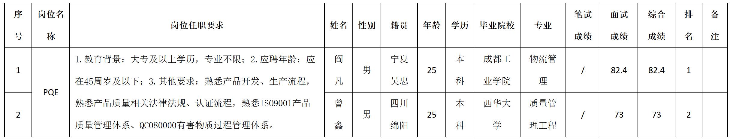 根據(jù)四川九州電子科技股份有限公司發(fā)布的招聘公告及招聘相關(guān)規(guī)定,經(jīng)筆試、面試等程序,現(xiàn)將筆試(面試)成績予以公示。