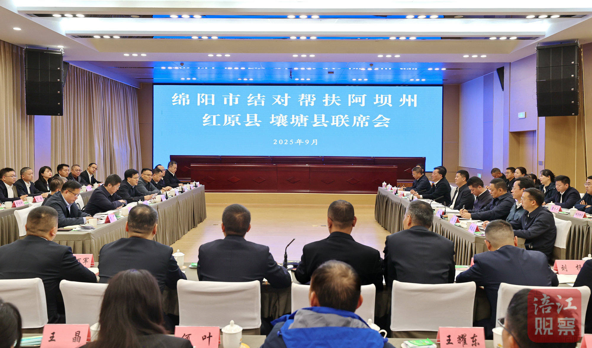 會(huì)上,左永祥對近年來阿壩州經(jīng)濟(jì)社會(huì)發(fā)展取得的成就表示祝賀。他說,開展東西部協(xié)作和定點(diǎn)幫扶,是黨中央著眼推動(dòng)區(qū)域協(xié)調(diào)發(fā)展、促進(jìn)共同富裕作出的重大決策。對紅原、壤塘開展結(jié)對幫扶,是省委、省政府賦予綿陽的一項(xiàng)光榮任務(wù)。我們將深入貫徹落實(shí)黨中央、國務(wù)院和省委、省政府決策部署,在精準(zhǔn)幫扶上持續(xù)發(fā)力,進(jìn)一步提升幫扶工作實(shí)效,為兩縣高質(zhì)量發(fā)展注入新活力。在振興產(chǎn)業(yè)上,幫助因地制宜發(fā)展文化旅游、農(nóng)牧業(yè)等特色優(yōu)勢產(chǎn)業(yè),將民族文化優(yōu)勢、生態(tài)環(huán)境優(yōu)勢、自然資源優(yōu)勢轉(zhuǎn)化為經(jīng)濟(jì)發(fā)展優(yōu)勢。在改善民生上,接續(xù)謀劃實(shí)施一批教育、醫(yī)療、交通等惠民生項(xiàng)目,進(jìn)一步完善公路、水利、電力、通信等基礎(chǔ)設(shè)施,助力兩縣不斷提升公共服務(wù)水平、改善生產(chǎn)生活環(huán)境。在培育人才上,加強(qiáng)干部人才雙向交流,著力拓展紅原、壤塘人才赴綿陽學(xué)習(xí)通道,努力為兩縣培養(yǎng)一支“帶不走”的干部人才隊(duì)伍。在鞏固團(tuán)結(jié)上,共同宣傳好、運(yùn)用好黨的民族宗教政策,不斷推進(jìn)中華民族共同體建設(shè),持續(xù)夯實(shí)兩縣和諧穩(wěn)定、長治久安的群眾基礎(chǔ)。綿陽和阿壩兩地資源稟賦、產(chǎn)業(yè)結(jié)構(gòu)、市場需求互補(bǔ)性很強(qiáng),具備良好的合作條件和廣泛的合作基礎(chǔ)。希望雙方在共促產(chǎn)業(yè)創(chuàng)新協(xié)同、共推文旅融合發(fā)展、共護(hù)綠色生態(tài)底色上持續(xù)發(fā)力,拓展合作領(lǐng)域、擴(kuò)大合作成果,攜手推動(dòng)綿阿深化合作協(xié)同發(fā)展再上新臺(tái)階。